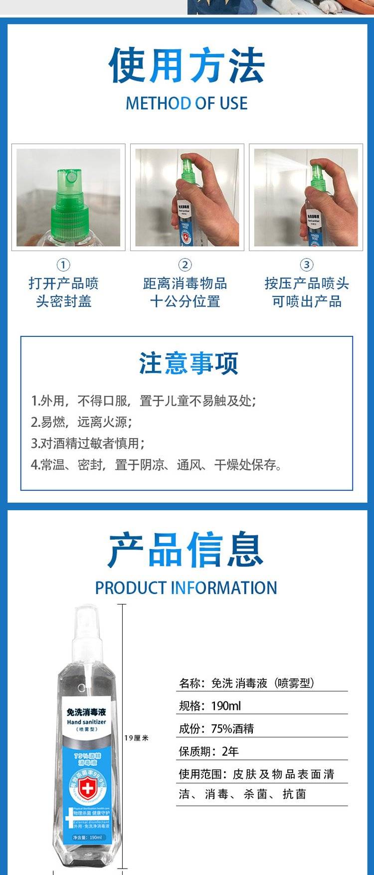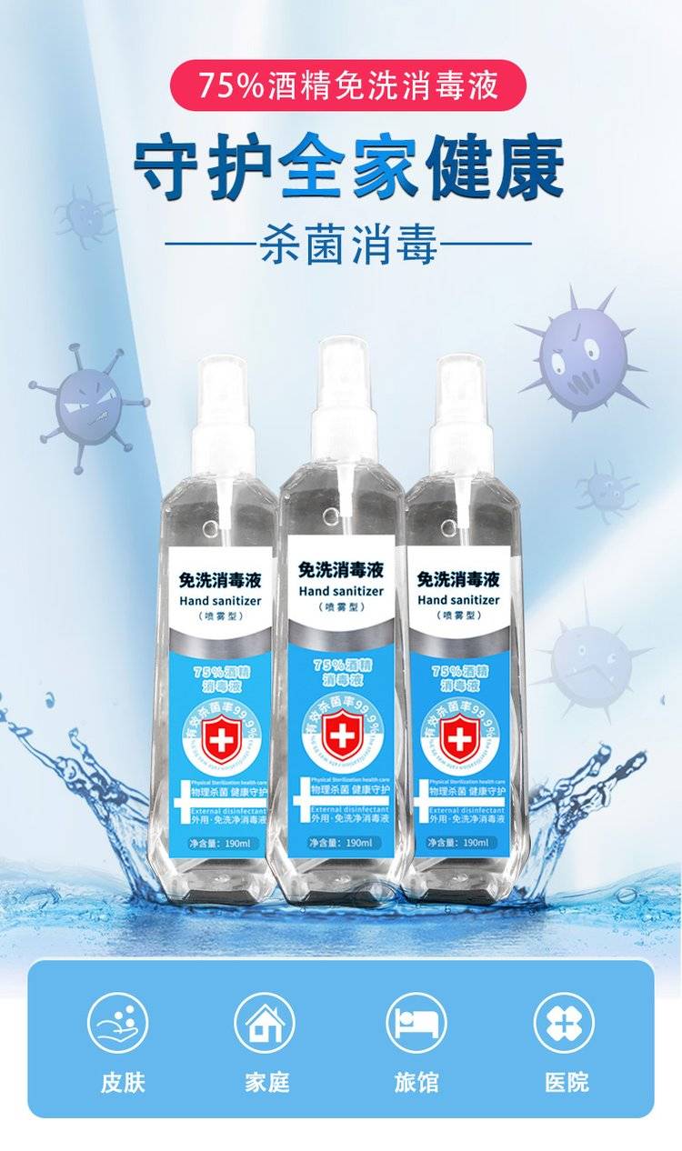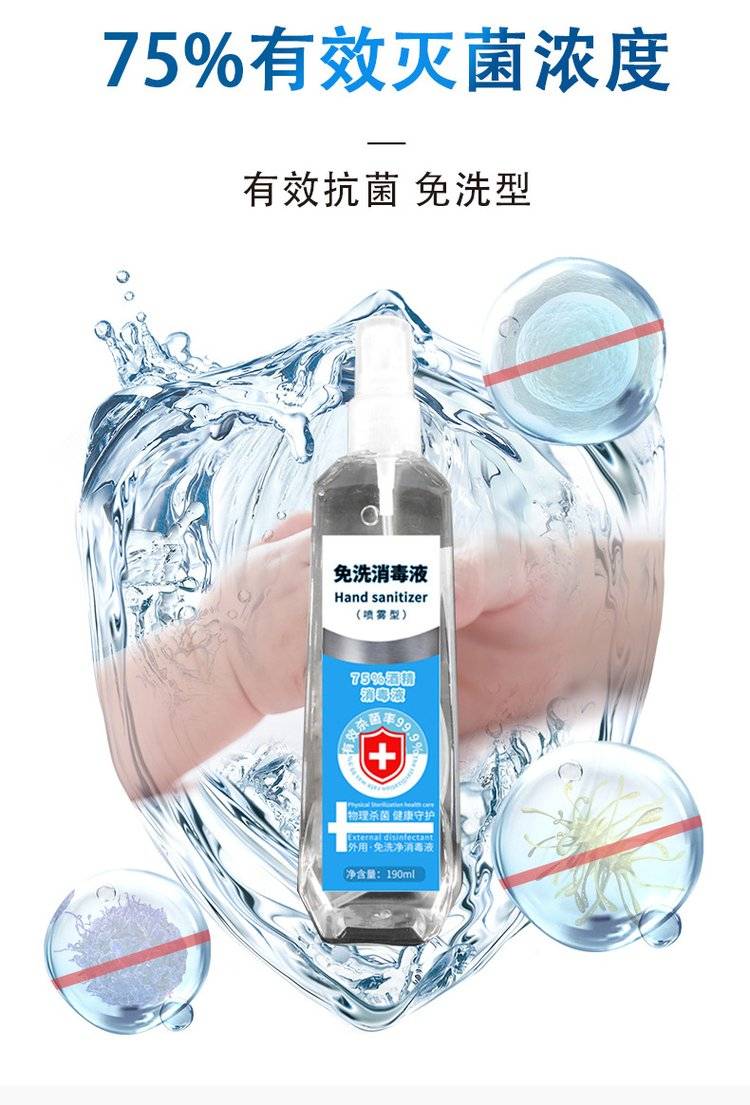 束渍品牌75%酒精消毒液喷雾型便携免洗洗手液