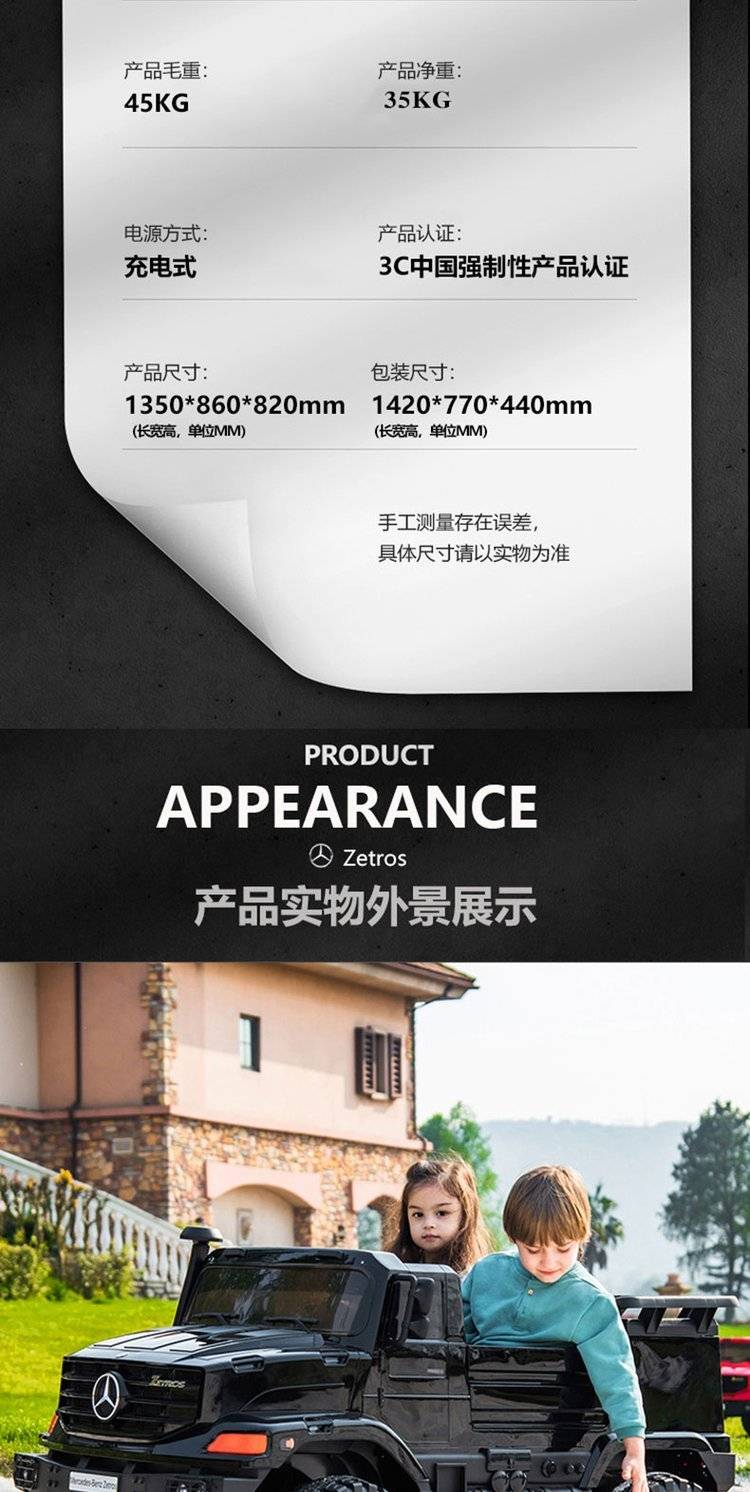 奔驰儿童电动汽车四轮车子宝宝小孩玩具可坐人越野车超大卡车