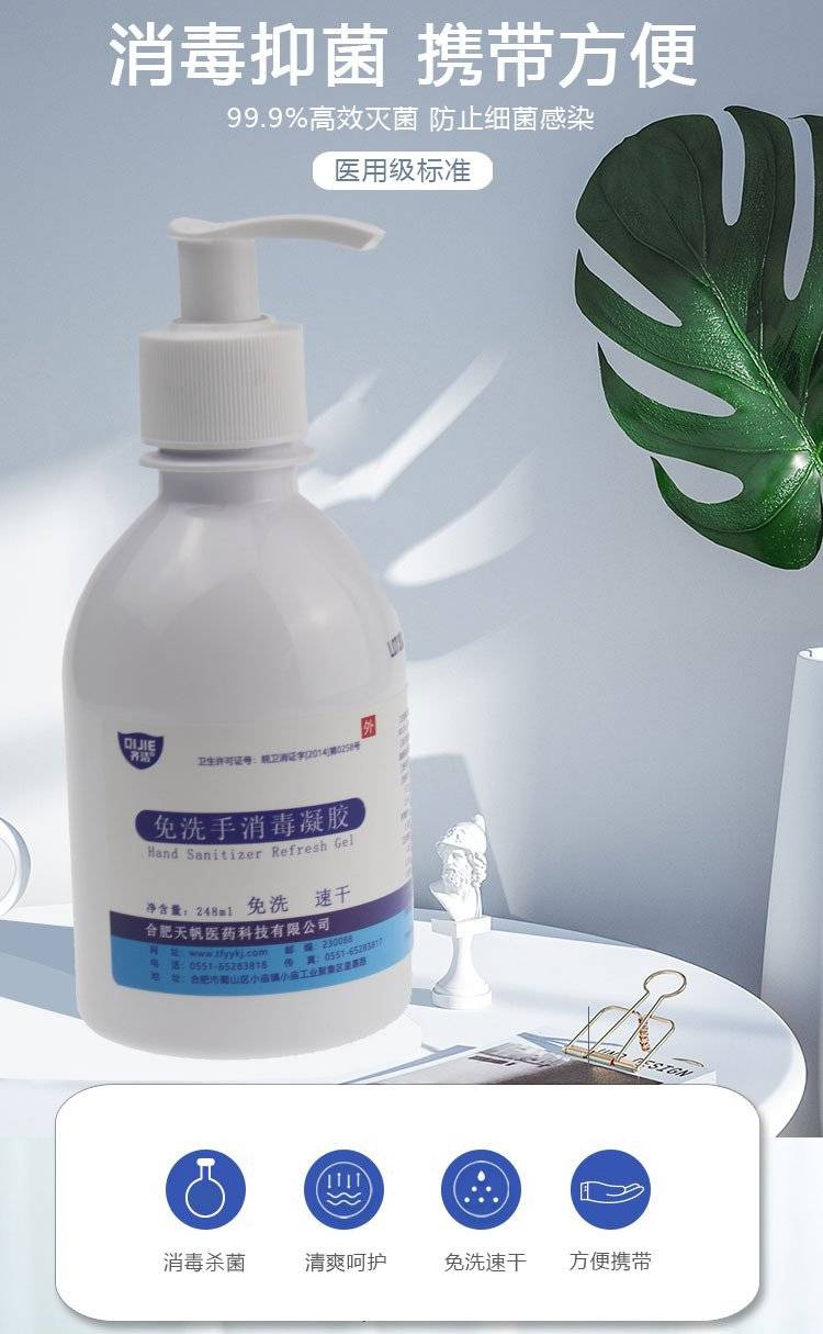 免洗手皮肤消毒凝胶实力工厂可定制出口贴牌248ml洗手液75%酒精