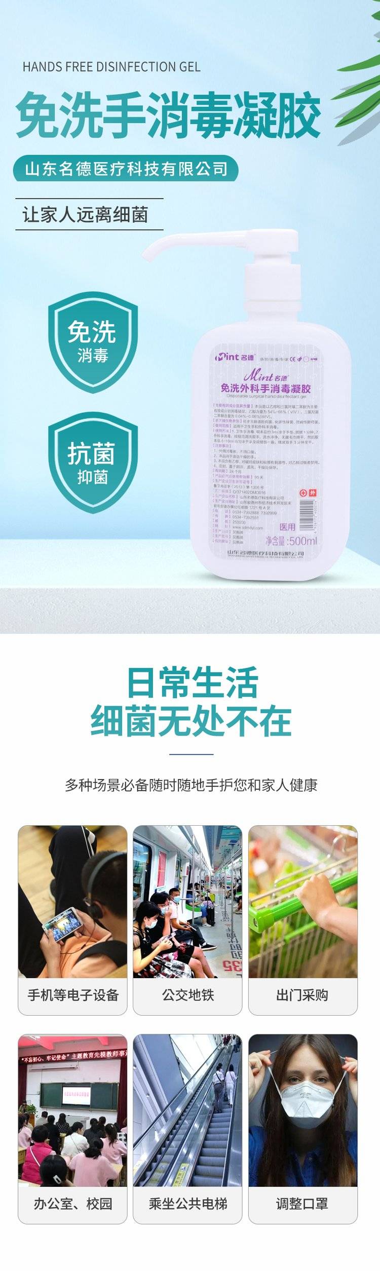 明德医疗 免洗外科手消毒凝胶 杀菌清洁手部 速干免水洗