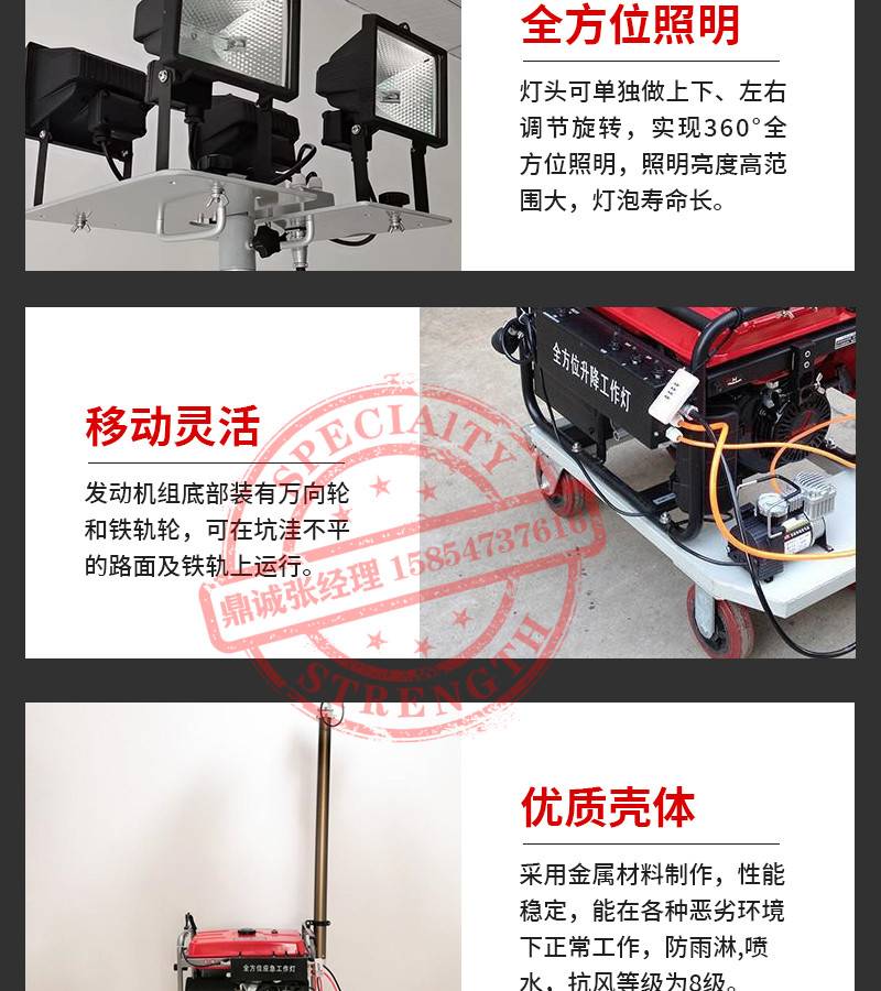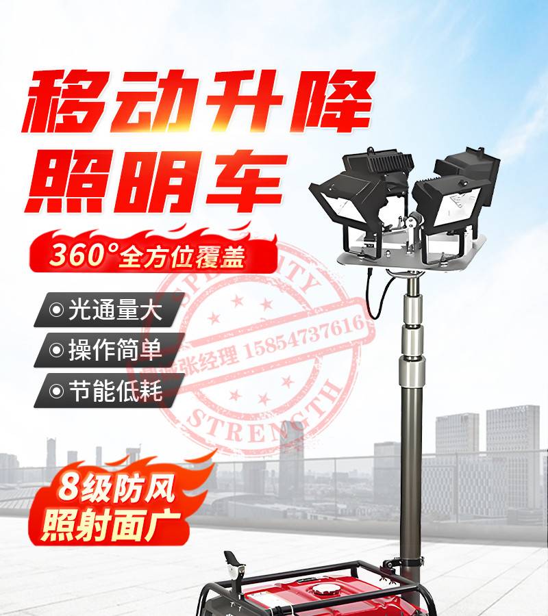 工程手推应急照明灯车 可升降拖车户外照明器 遥控抢险救援工作灯