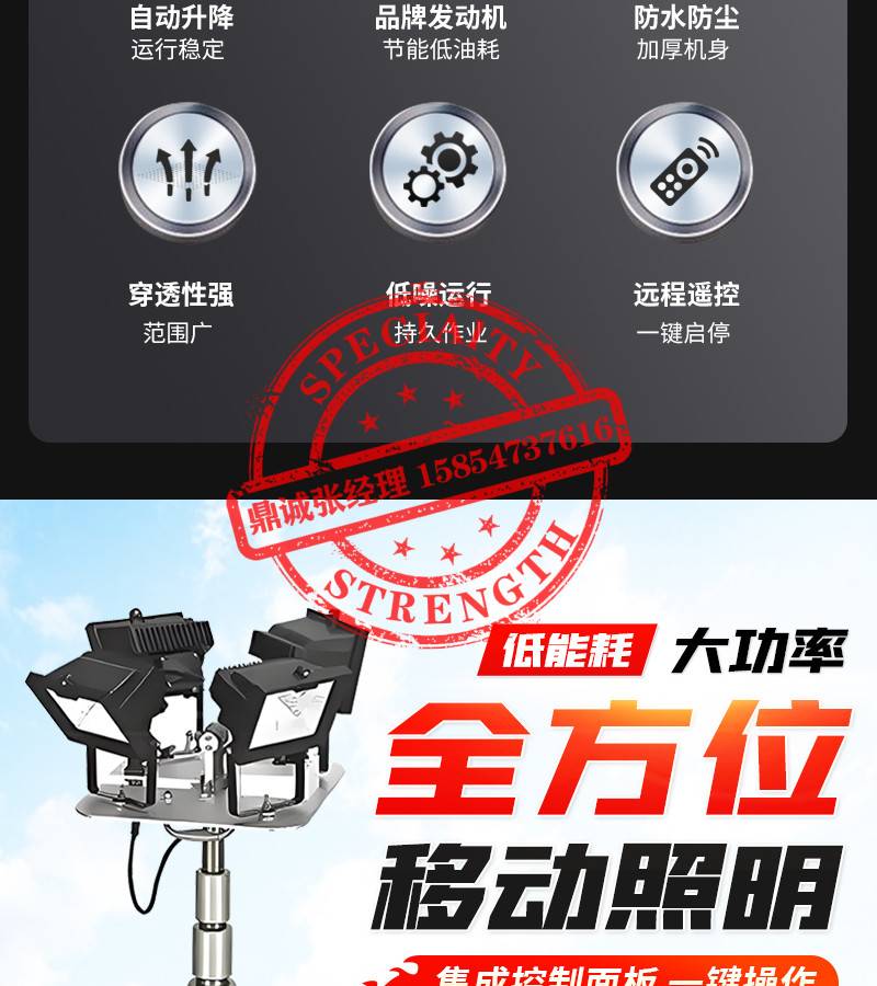 工程手推应急照明灯车 可升降拖车户外照明器 遥控抢险救援工作灯