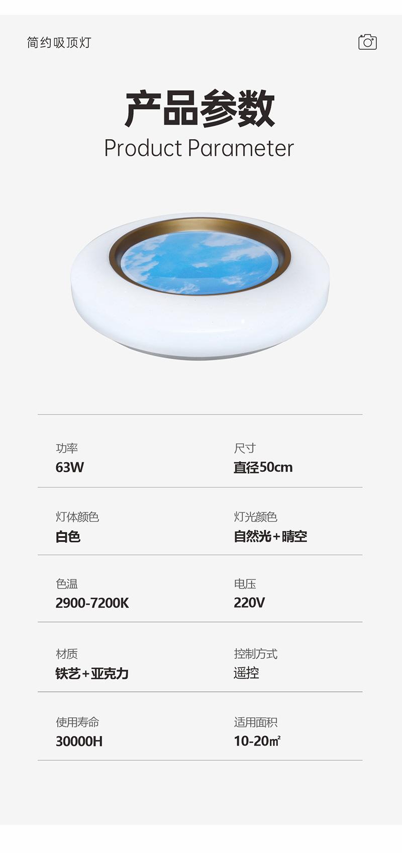 天镜灯晴空灯客厅卧室吸顶灯超薄自然光全色域护眼灯跨境青空灯