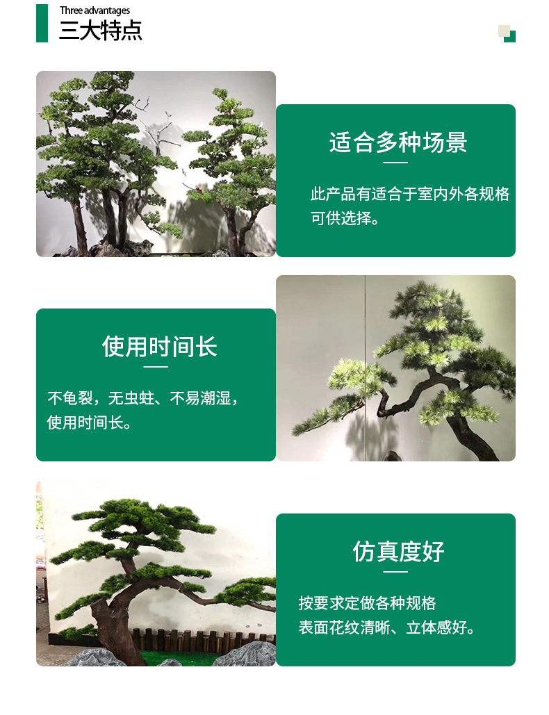 仿真迎客松酒店大堂禅意罗汉松美人松室内外假树大型摆件景观松树