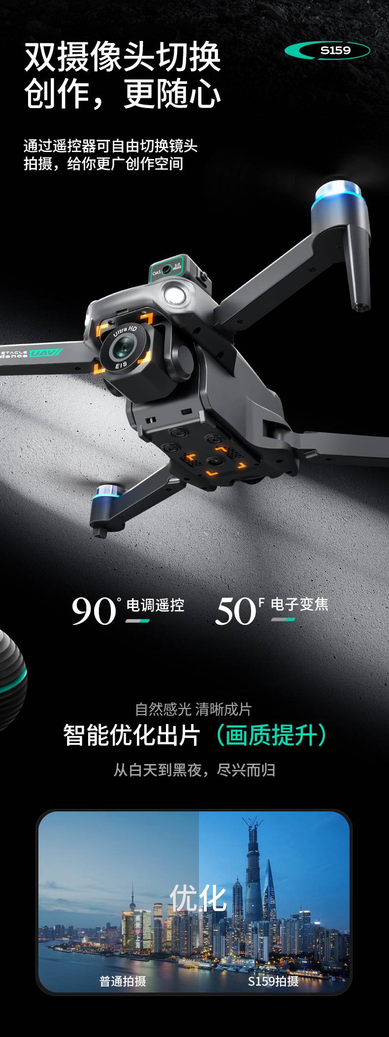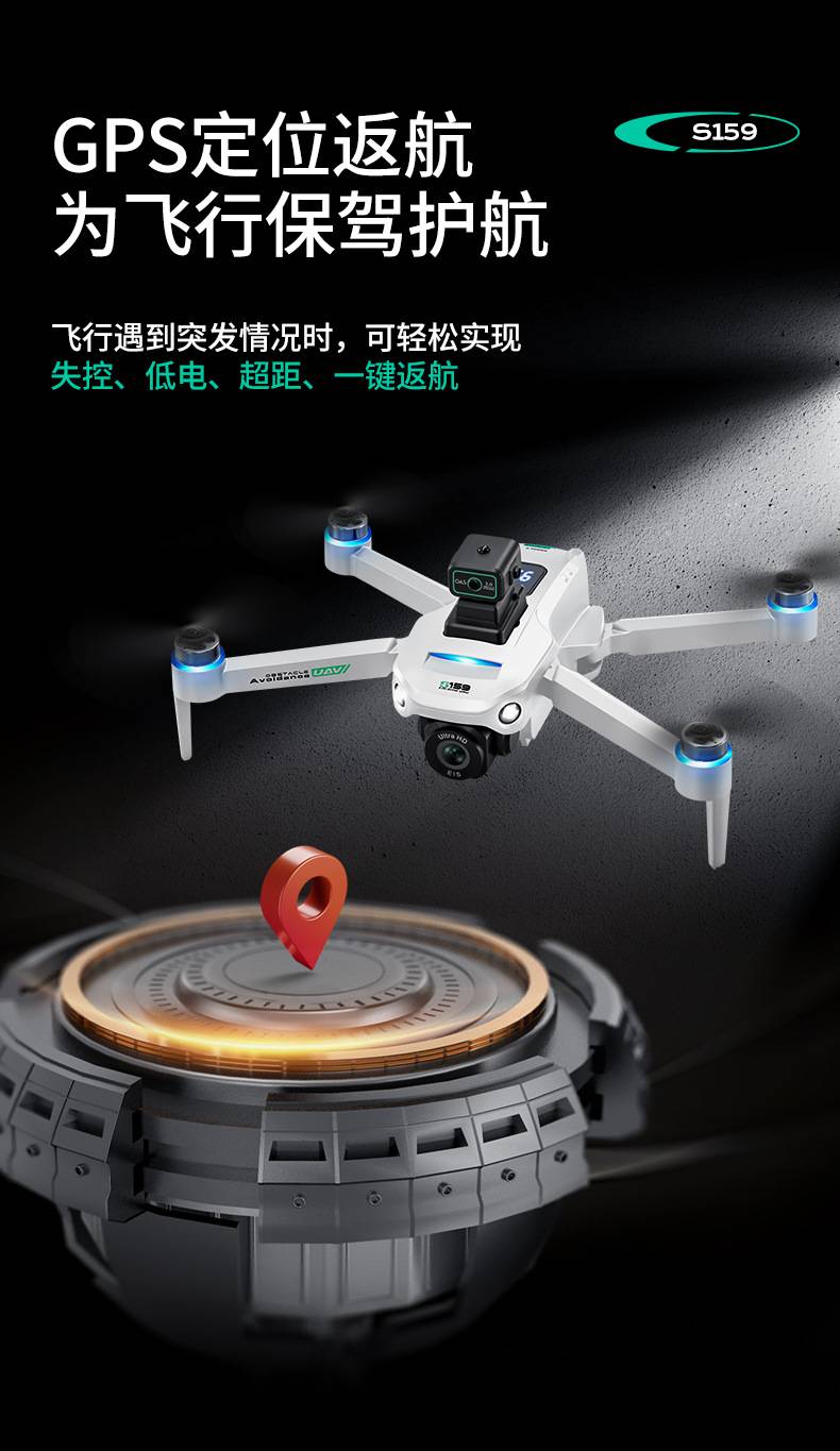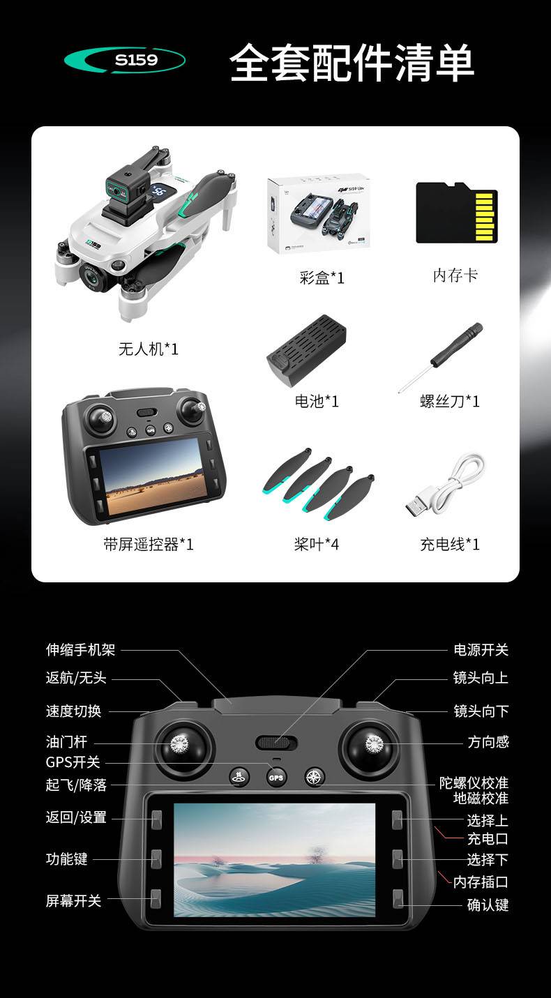 S159无人机遥控航拍飞行器带显示屏自动返航四轴GPS遥控飞机玩具