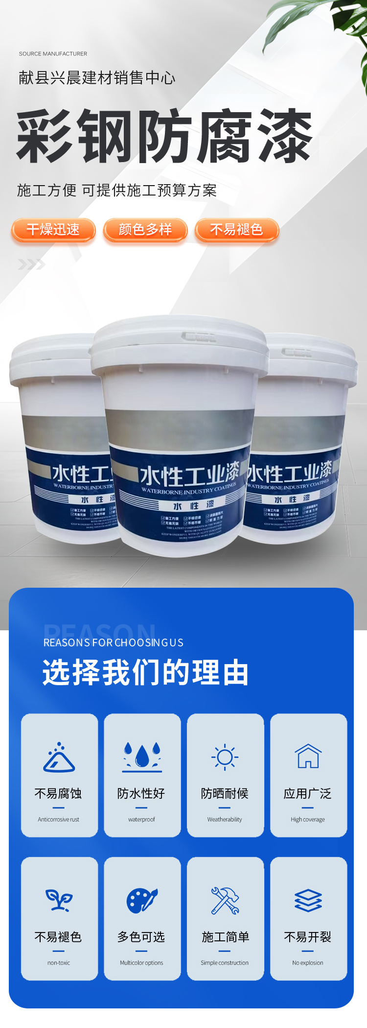 工业水漆 钢结构专用防腐漆 低 VOC 环保快干 桥梁船舶金属防护涂料