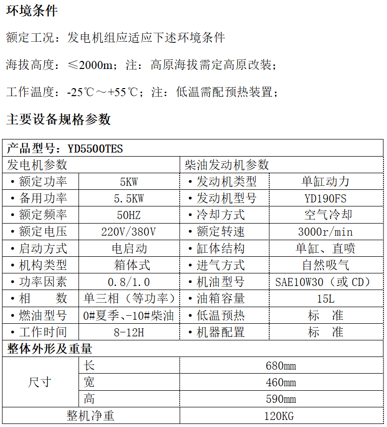 大羊动力5KW变频静音柴油发电机 尺寸680*460*590mm长宽高 电子调速