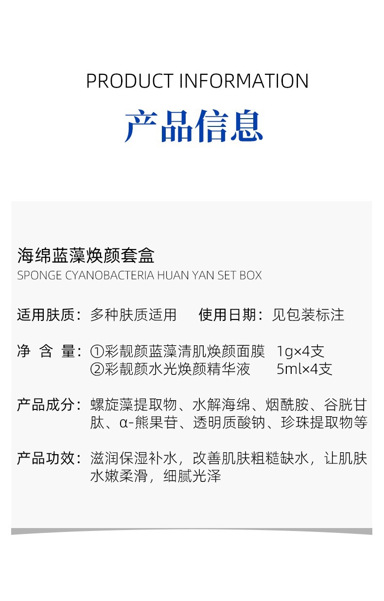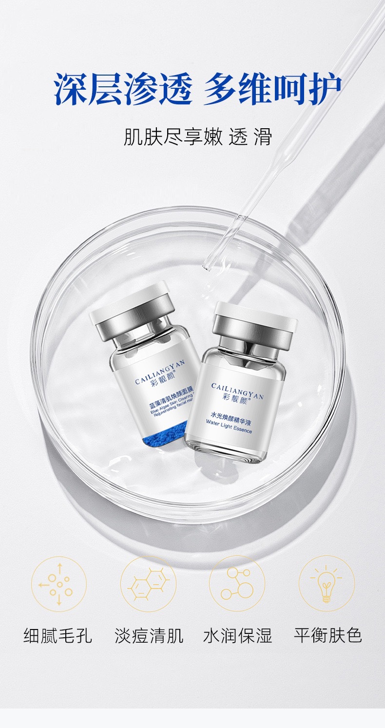 »彩靓颜蓝藻清肌焕颜面膜+水光焕颜精华液 祛痘印痘坑细腻毛孔