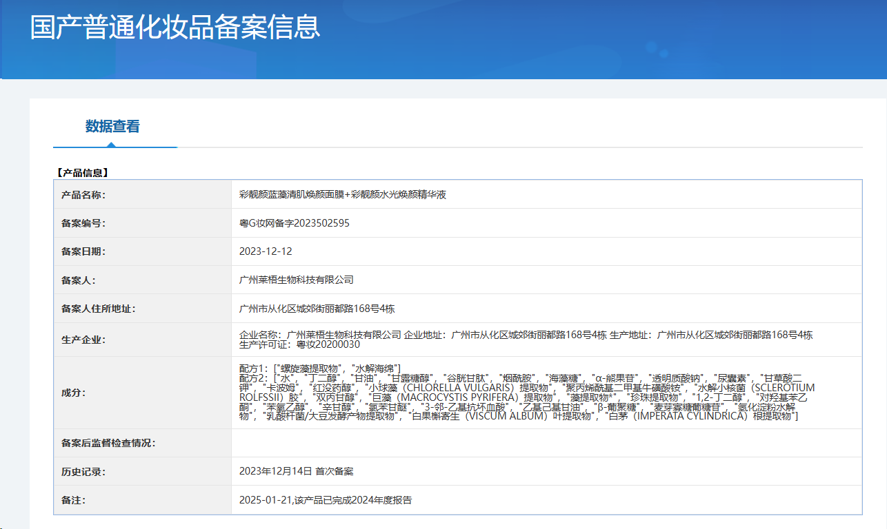 彩靓颜蓝藻清肌焕颜面膜+水光焕颜精华液 祛痘印痘坑细腻毛孔
