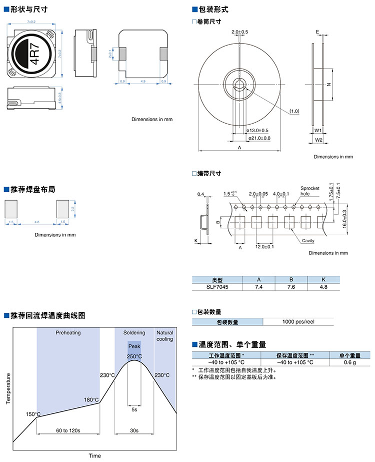 7x7 10uH 1.3A 大电流贴片牌帘喂β实绺� SLF7045T-100M1R3-PF