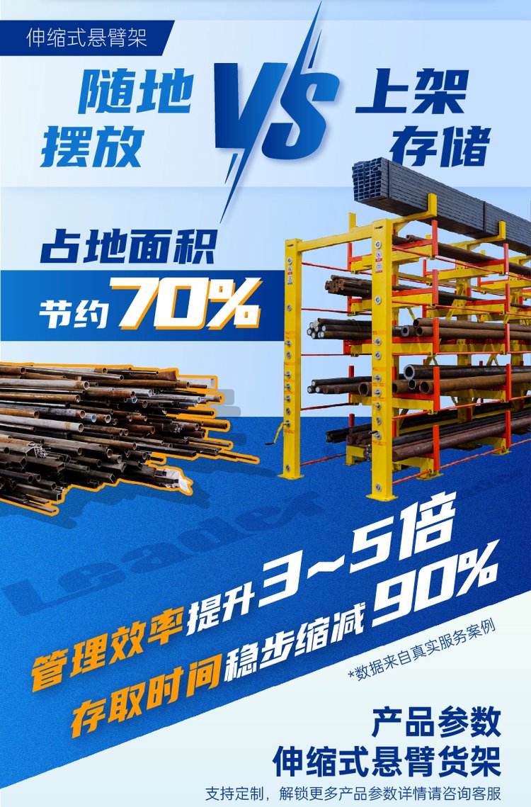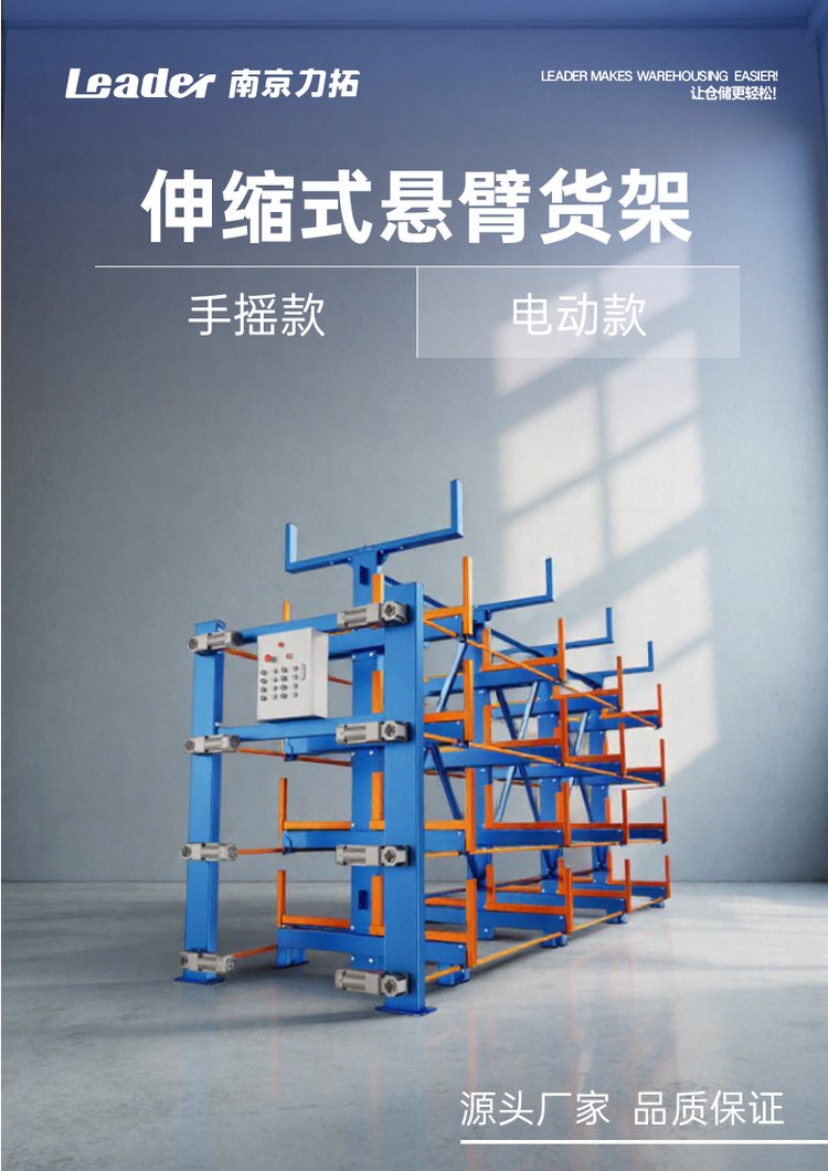 力拓 电动伸缩式悬臂货架 工业重型仓储管��型材智能抽拉货物架