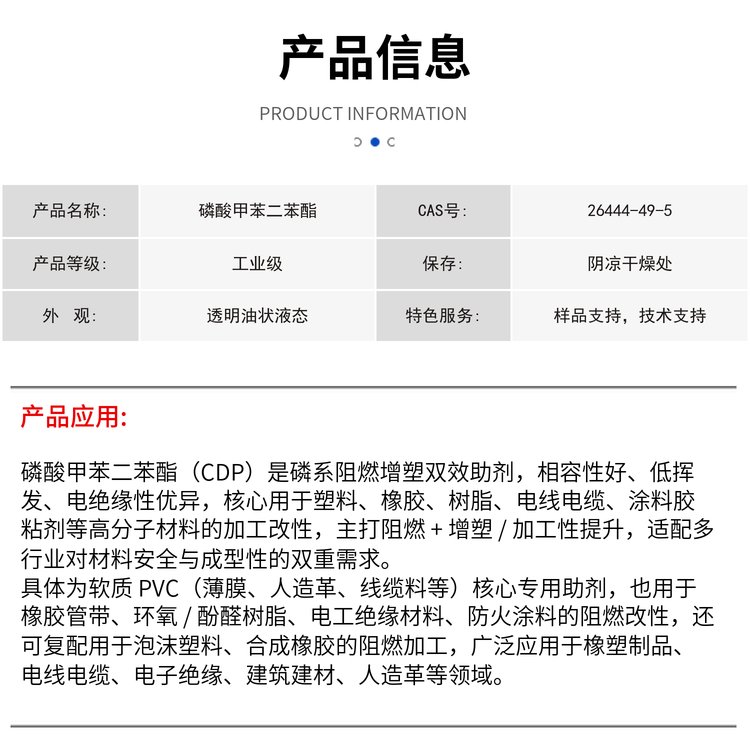 磷酸甲苯二苯酯 CDP 磷系阻燃剂 低挥发工业级阻燃���批发