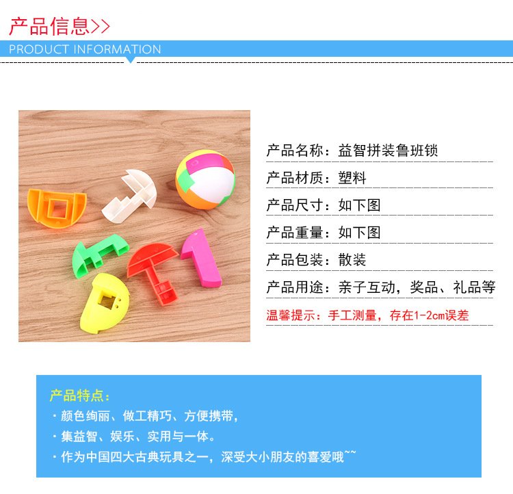 益智玩具孔明锁塑料积木拆装玩具成人解压儿童智力