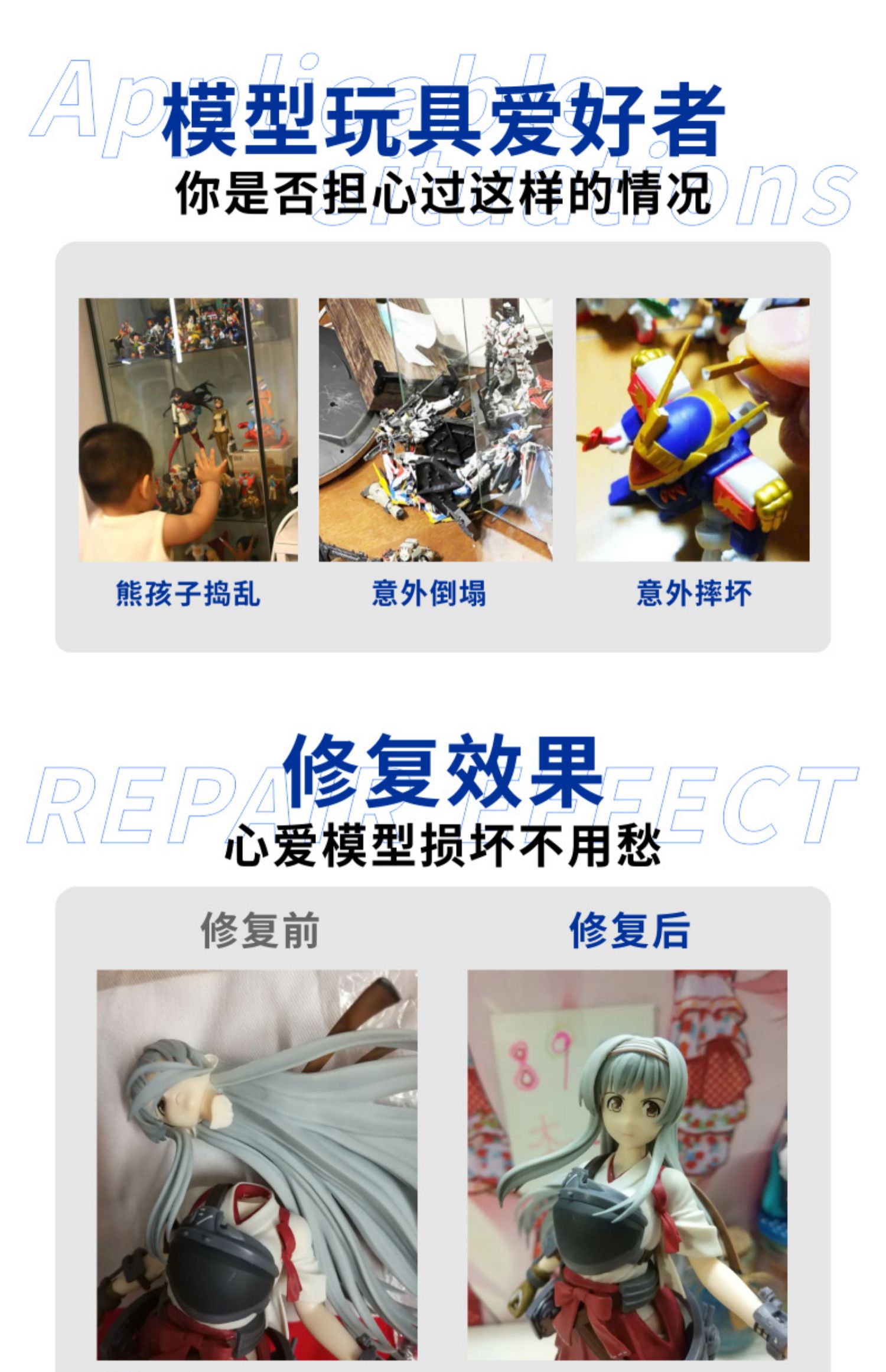 粘手办专用强力胶水制作修补修复高达乐高积木硬pvc塑料树脂abs玩