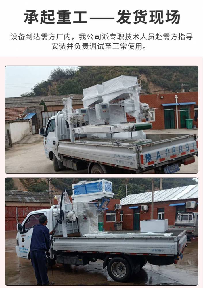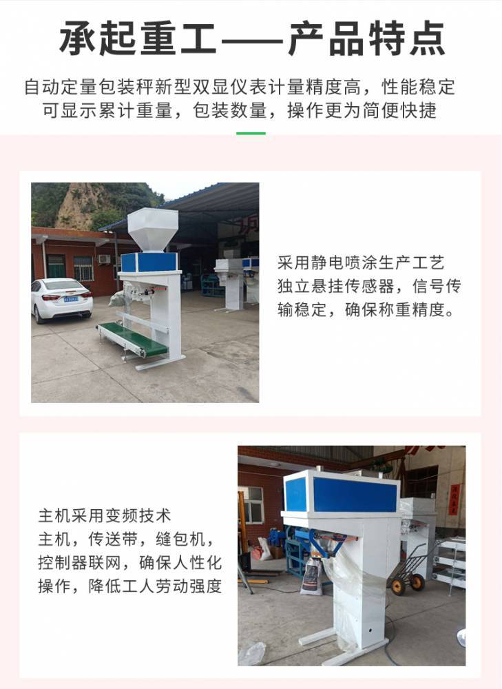 当重量≤零位设定值时,称量斗卸料门自动关闭,物料袋自动松开落入输送带上,被送到缝包机缝包之后进入下一工序,