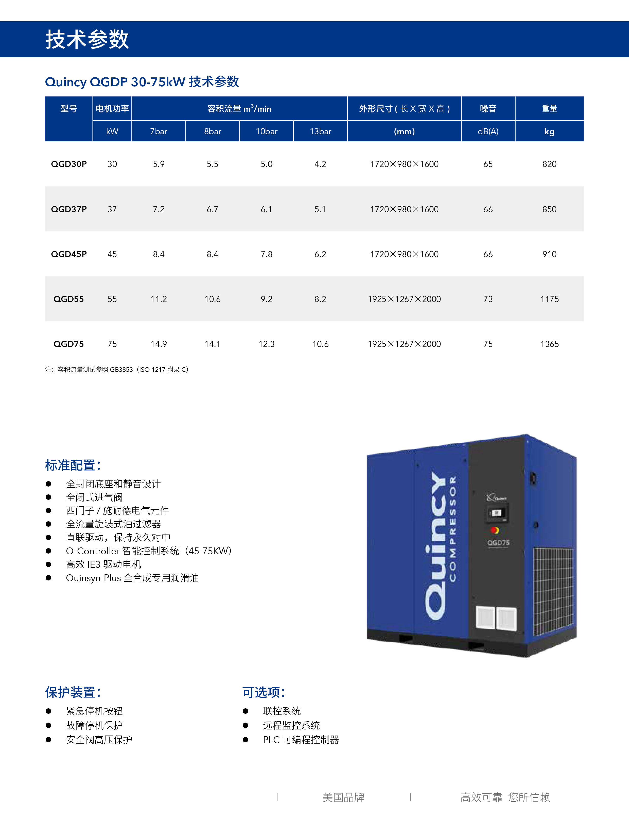 »美国昆西QGDP系列 螺杆式空气压缩机 30-250KW
