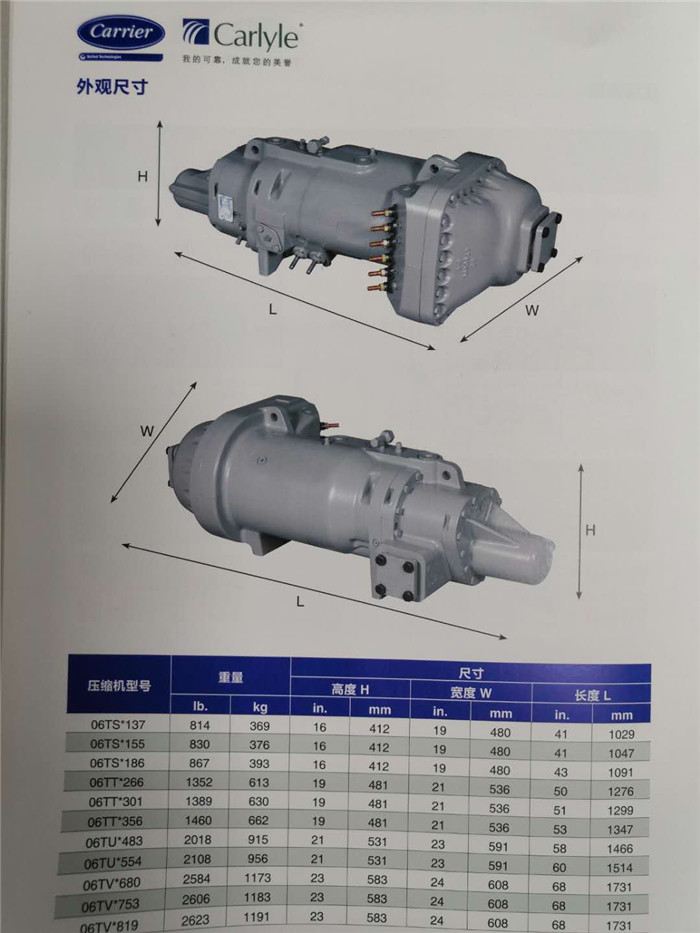 »06TSR186SJ3D-A07 半封闭双螺杆压缩机 R134A风冷系列 Carlyle