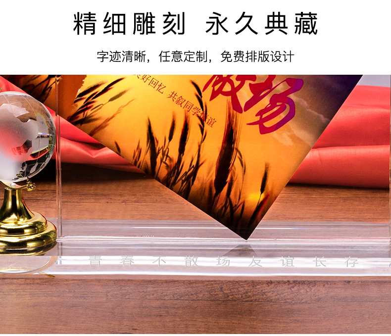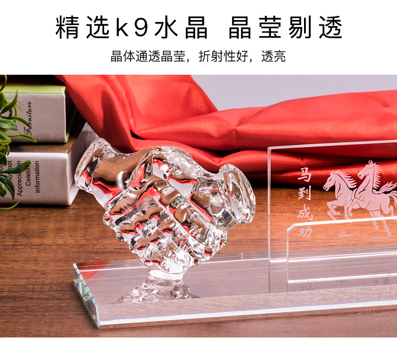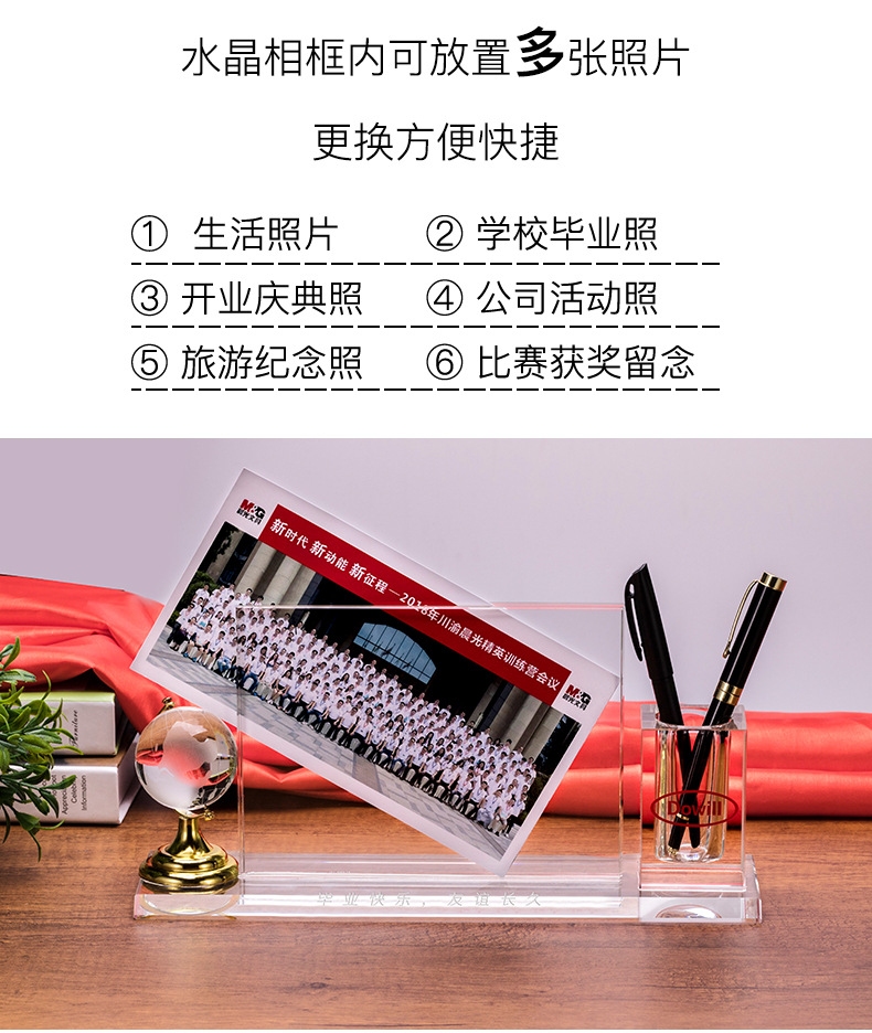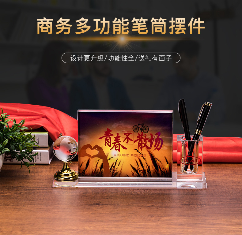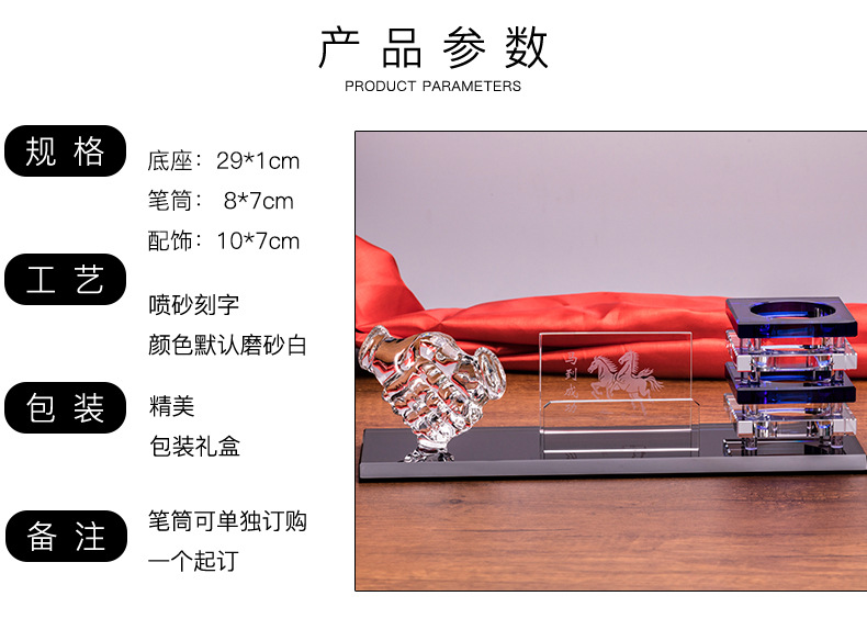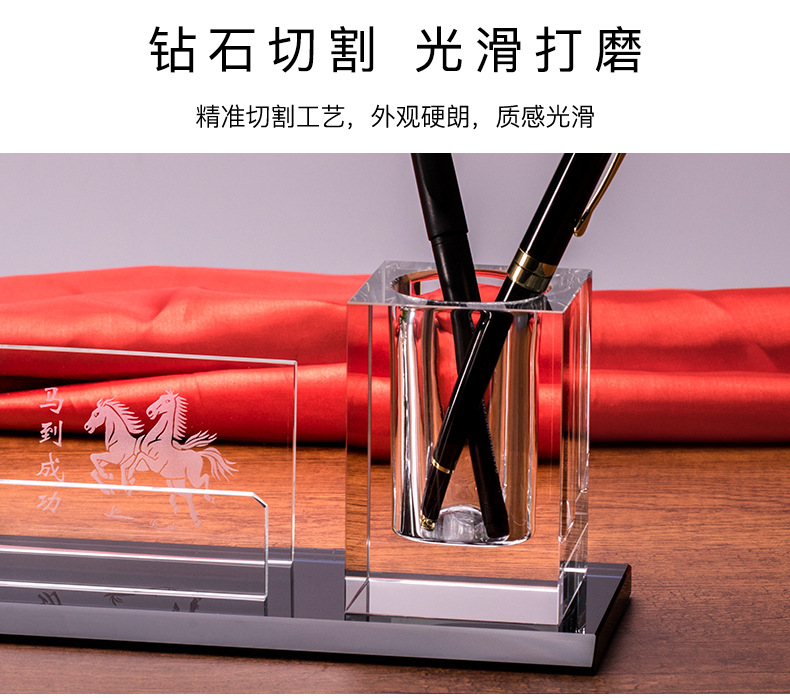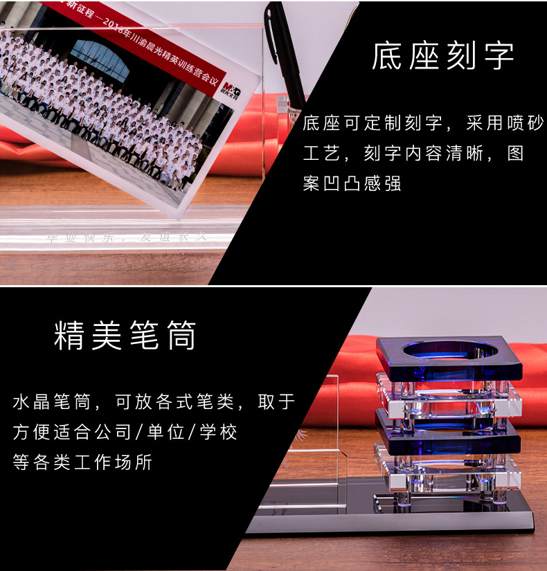水晶笔筒三件套_创意实用毕业季定_制开业纪念刻字办公室摆件商务