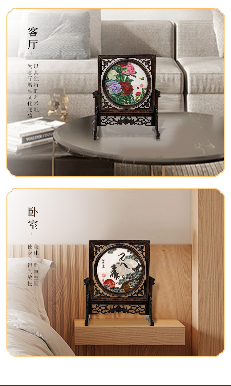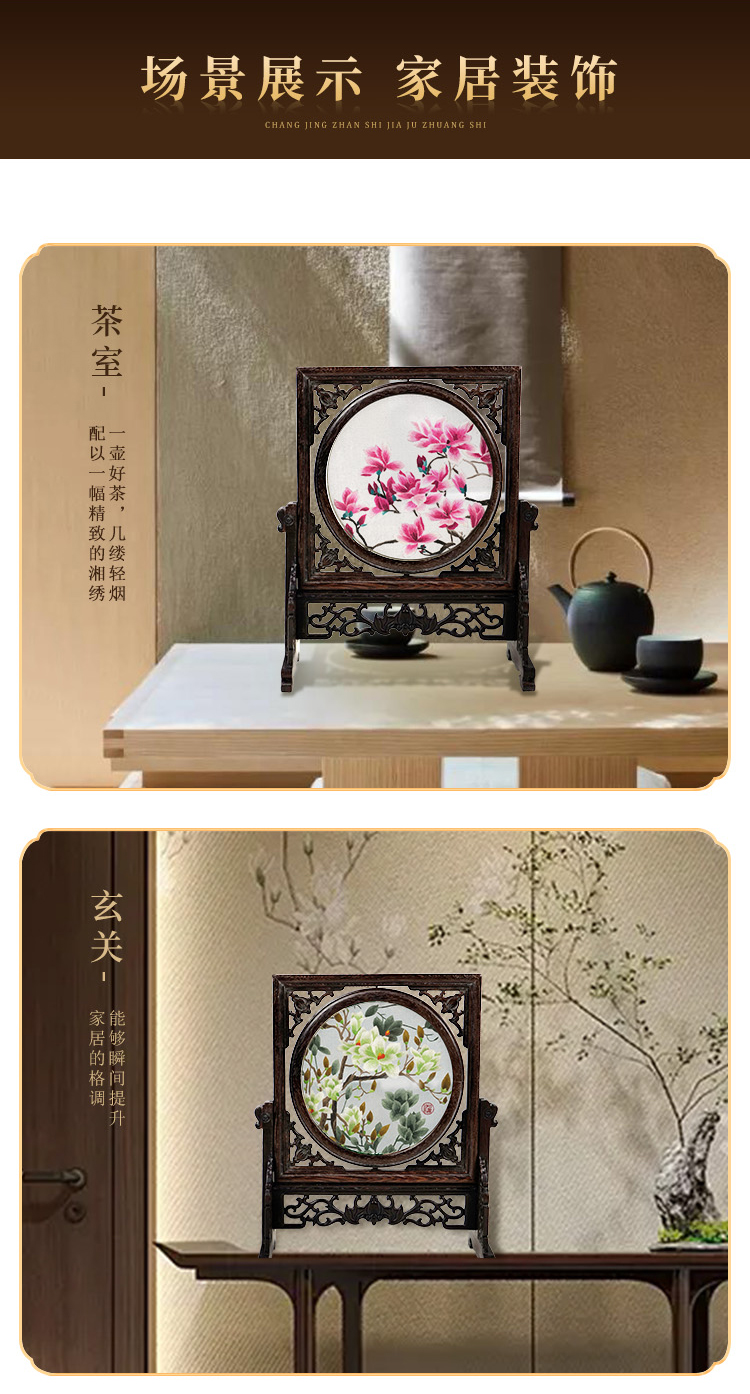 伊飞湘绣 纯手工刺绣双面绣鸡翅木蝙蝠框 玉兰 花卉 桌面摆件 玉兰花