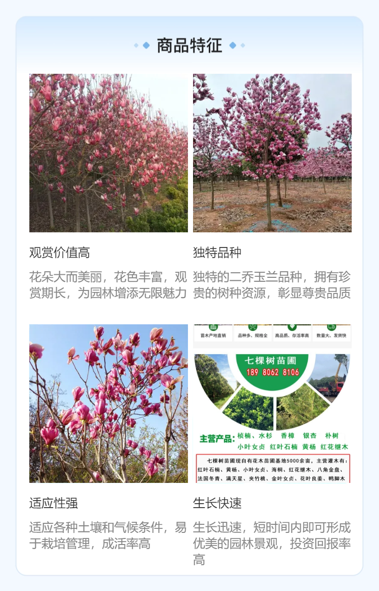二乔玉兰种植基地 2cm-30cm 紫玉兰白玉兰批发 七棵树源头苗圃