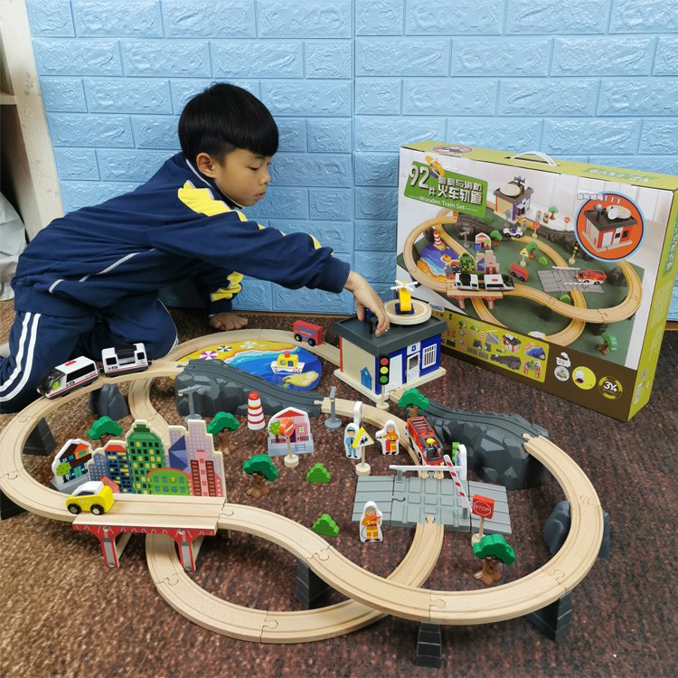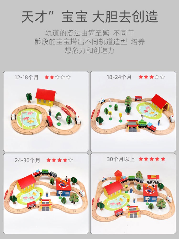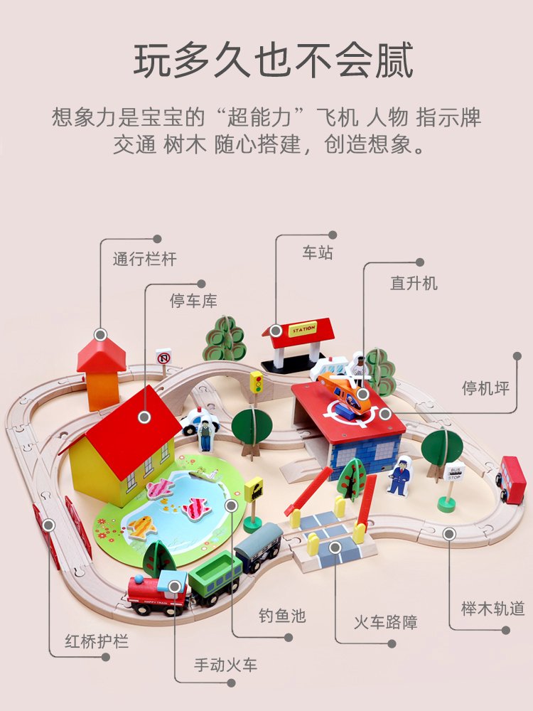 木质小火车轨道套装 磁性电动车头积木 益智类拼装儿童玩具