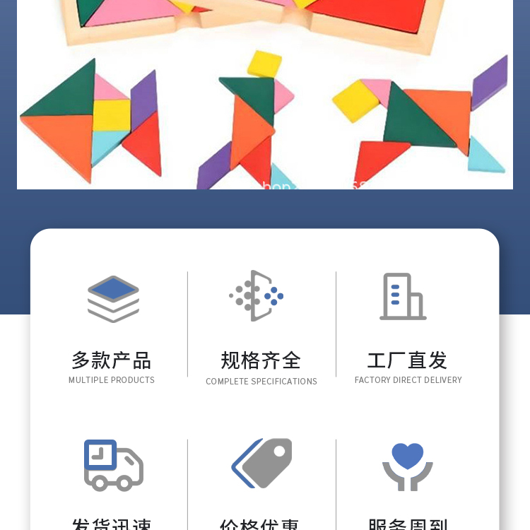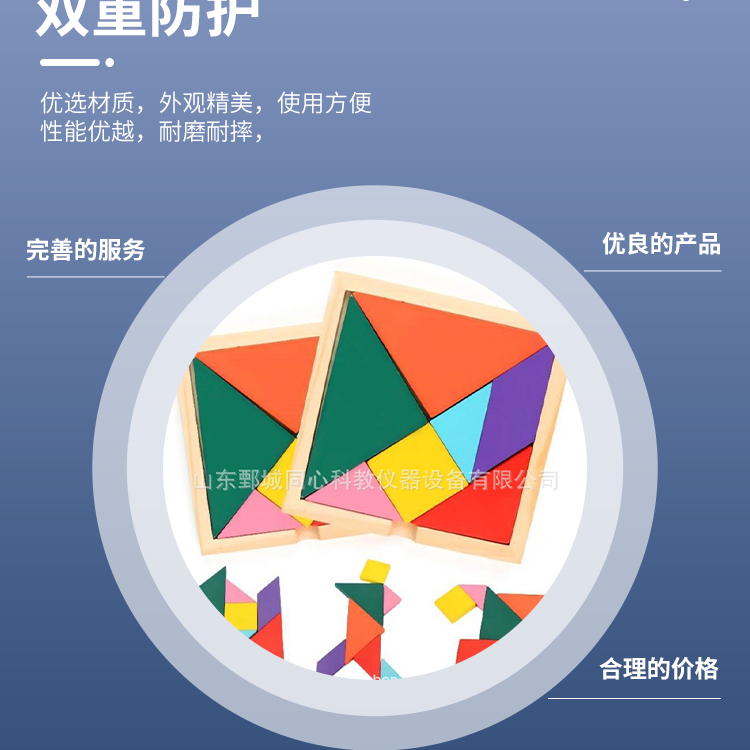 中小学数学教学仪器七巧板学生用品教学设备木质彩色拼图积木玩具