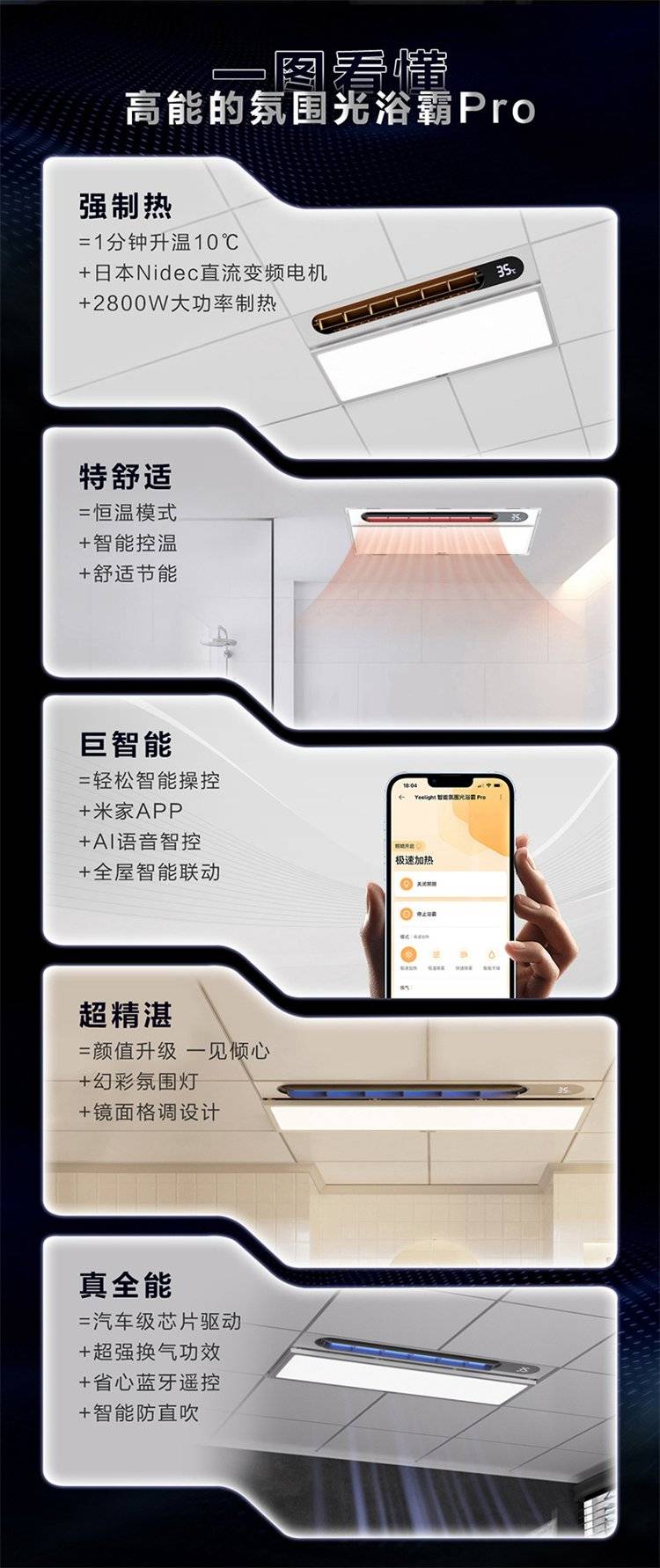 Yeelight浴霸Pro直流变频米家APP风暖速热集成嵌入式易来智能浴霸