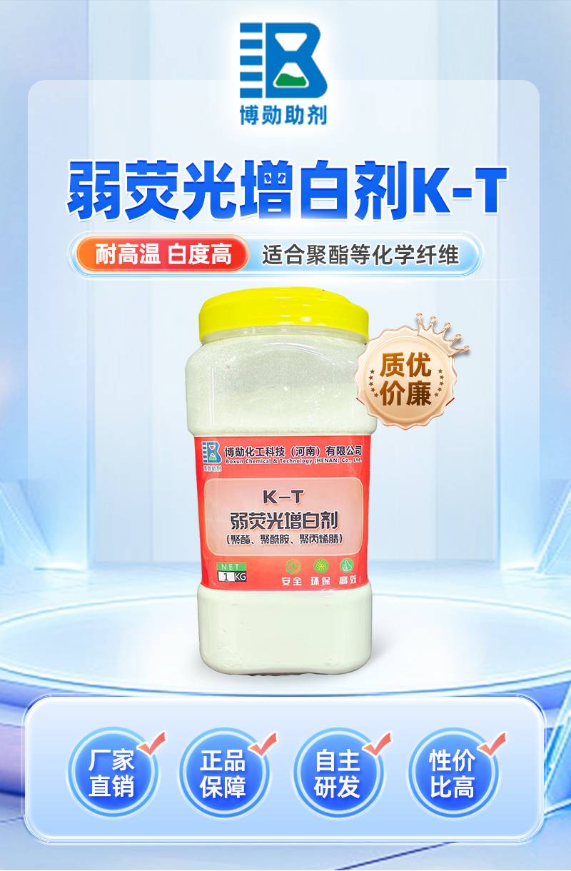 弱荧光增白剂K-T 白度高用量少 耐高温聚酯化学纤维 源头厂家 博勋