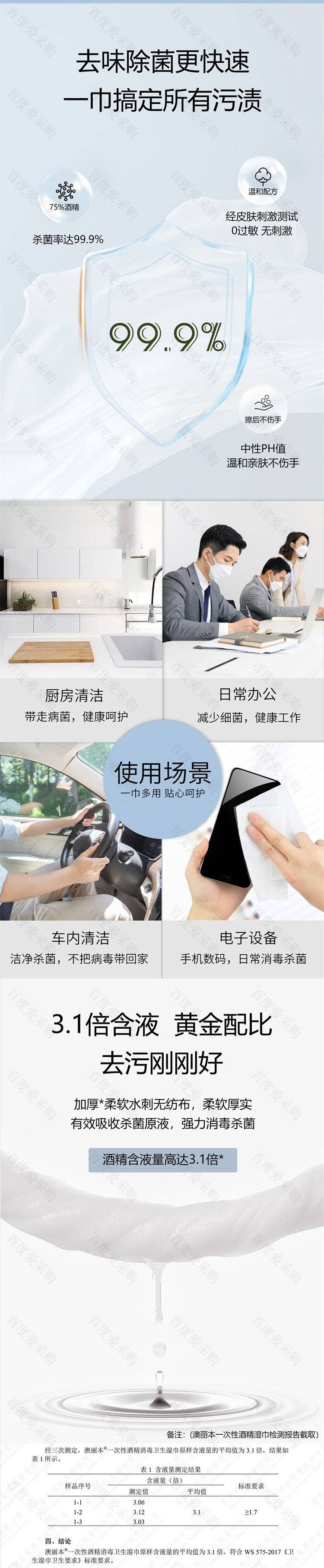 一次性酒精消毒湿巾 杀菌率高 除菌不刺鼻 温和不伤手 80抽/盒