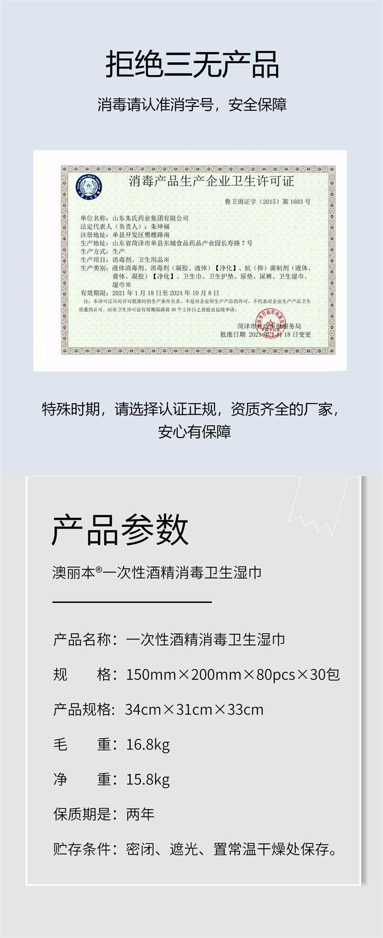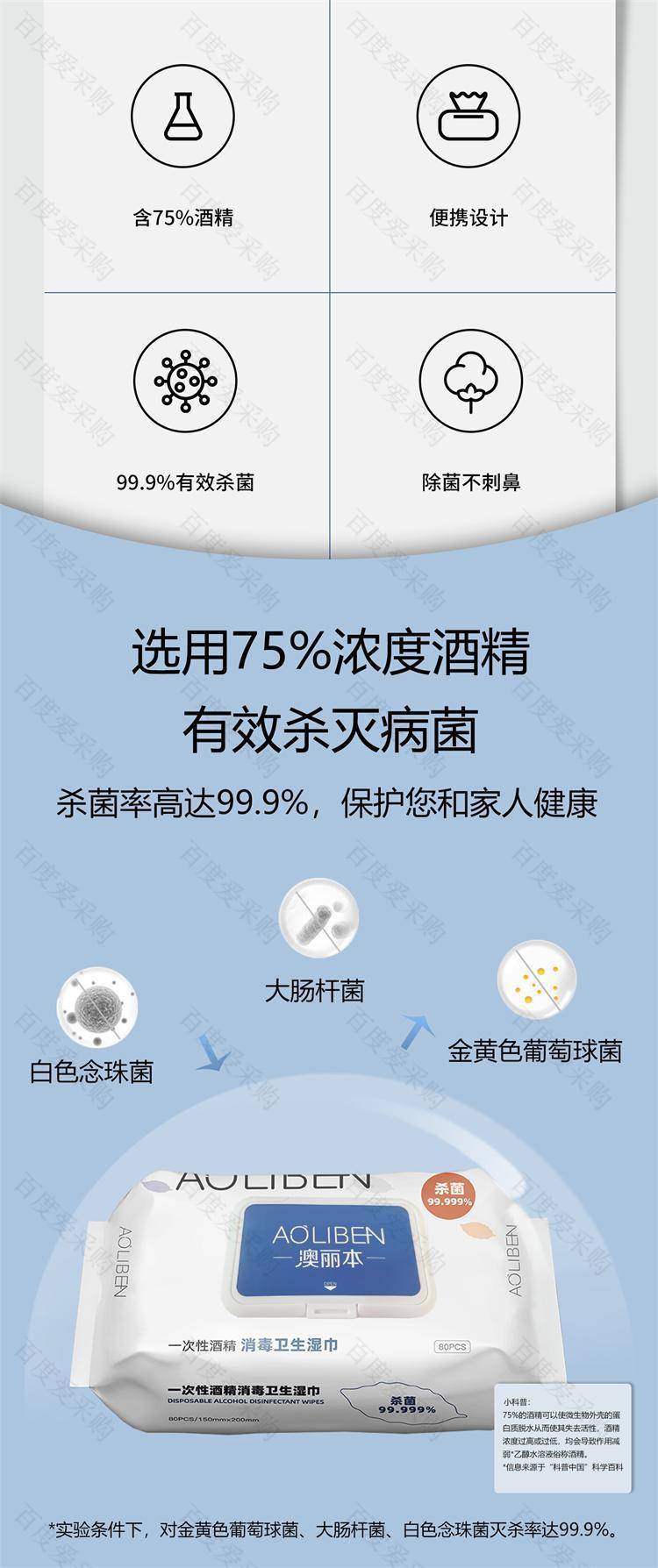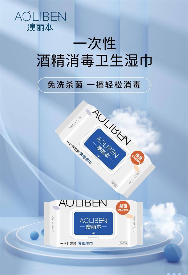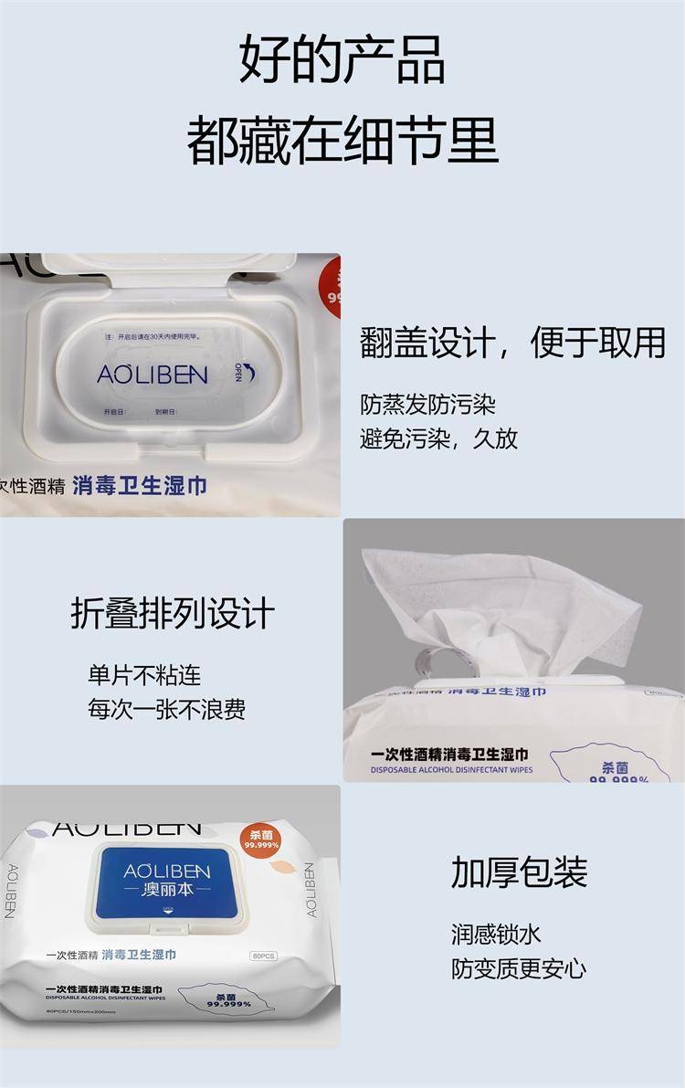 75%酒精消毒湿巾 80片包装 杀菌清洁便携式湿纸巾