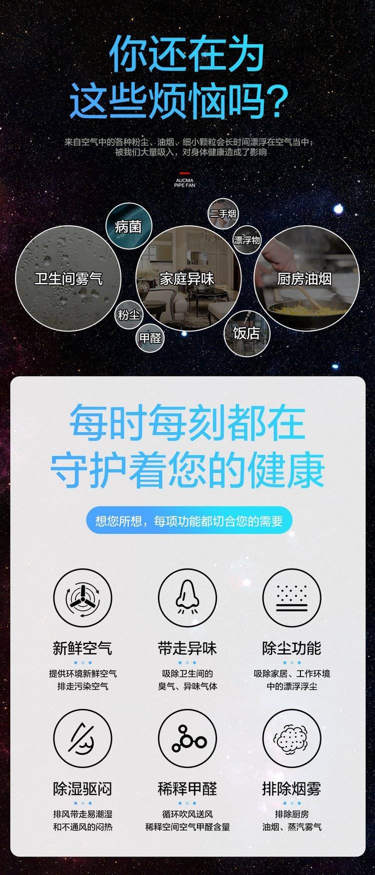 管道抽风机家用厨房强力排风扇卫生间排气扇厕所静音换气扇