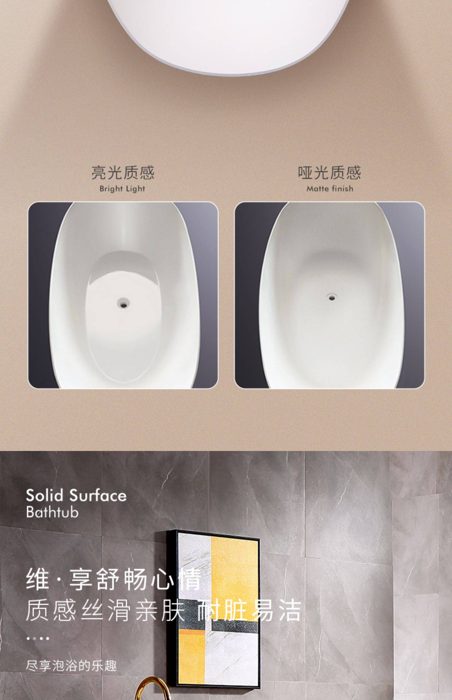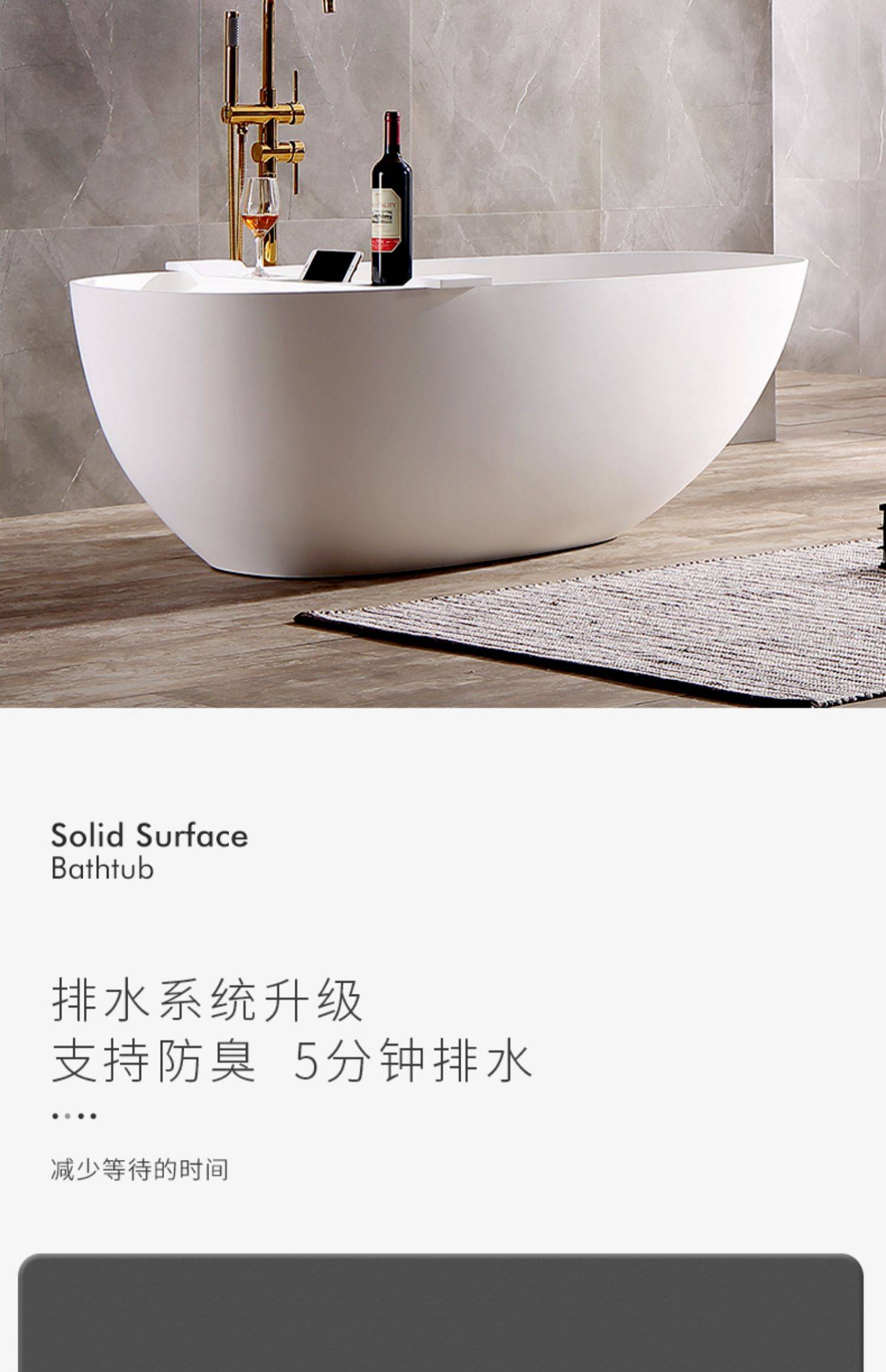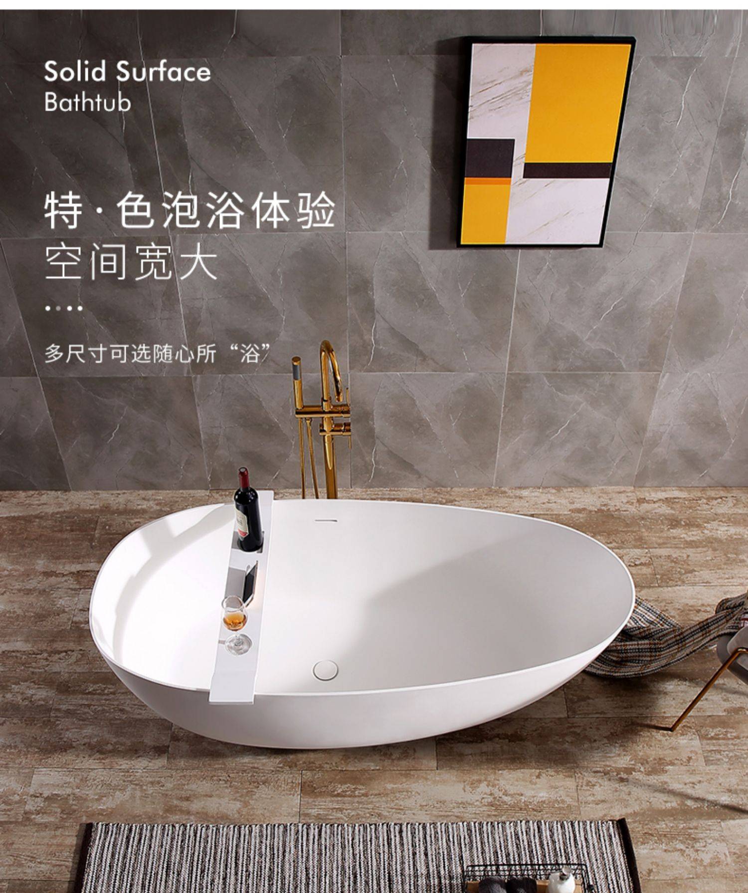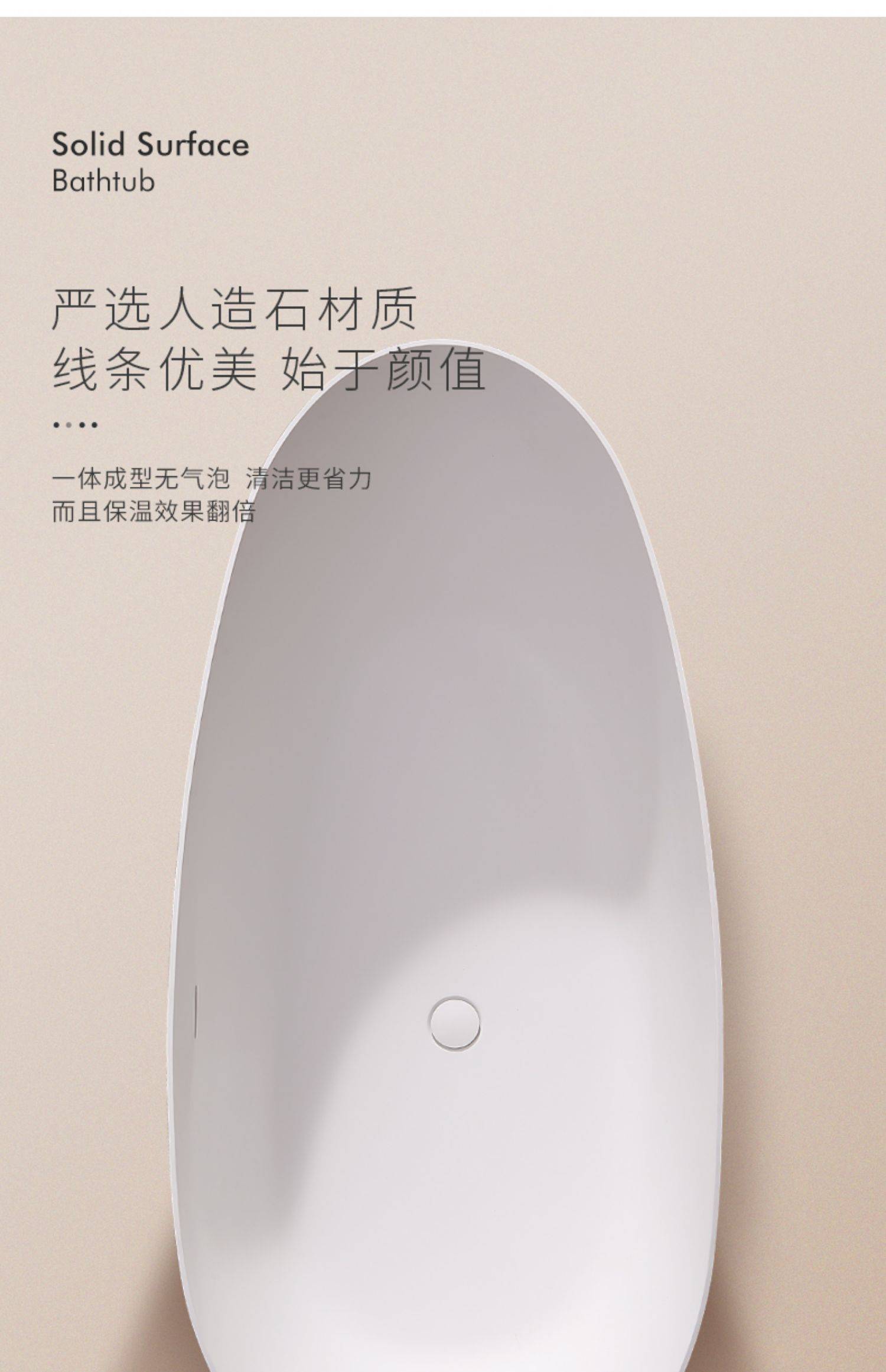 OF9D人造石浴缸家用小户型独立式轻奢厚薄边鹅蛋形绮美石浴盆