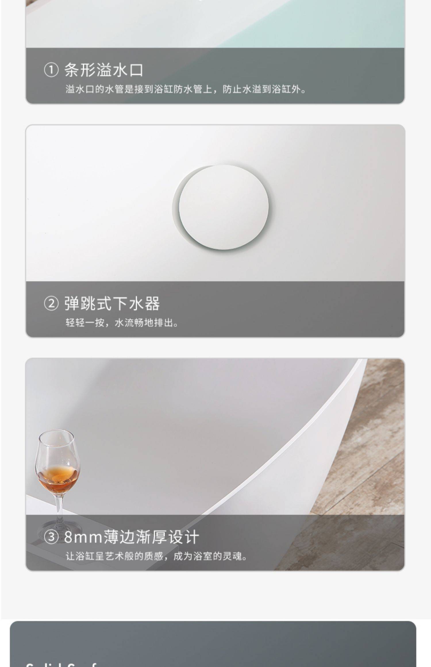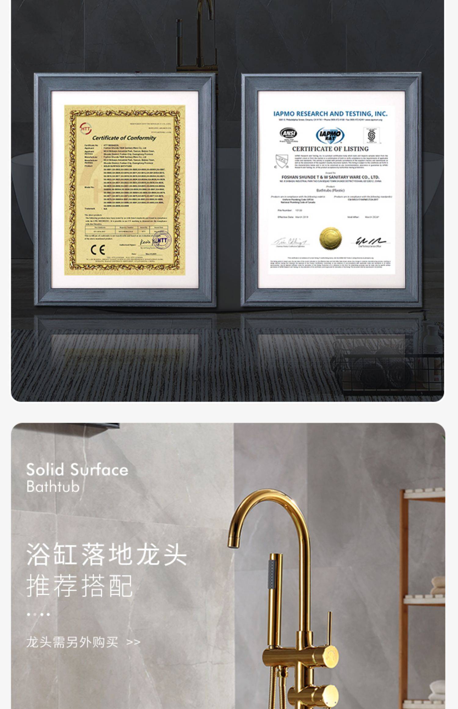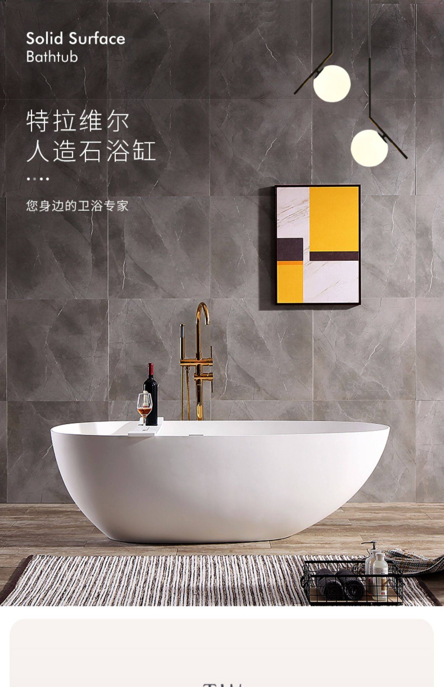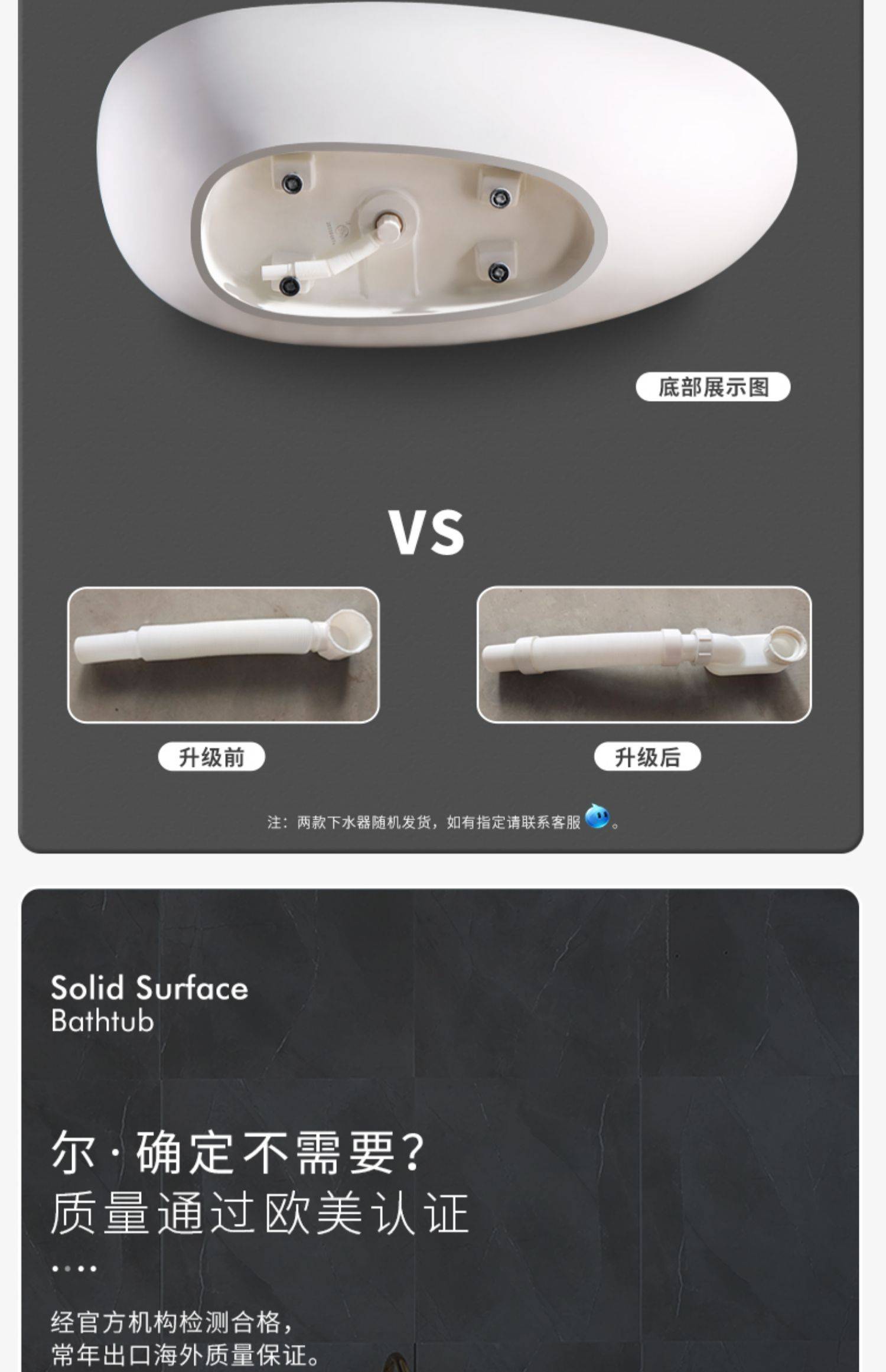 OF9D人造石浴缸家用小户型独立式轻奢厚薄边鹅蛋形绮美石浴盆