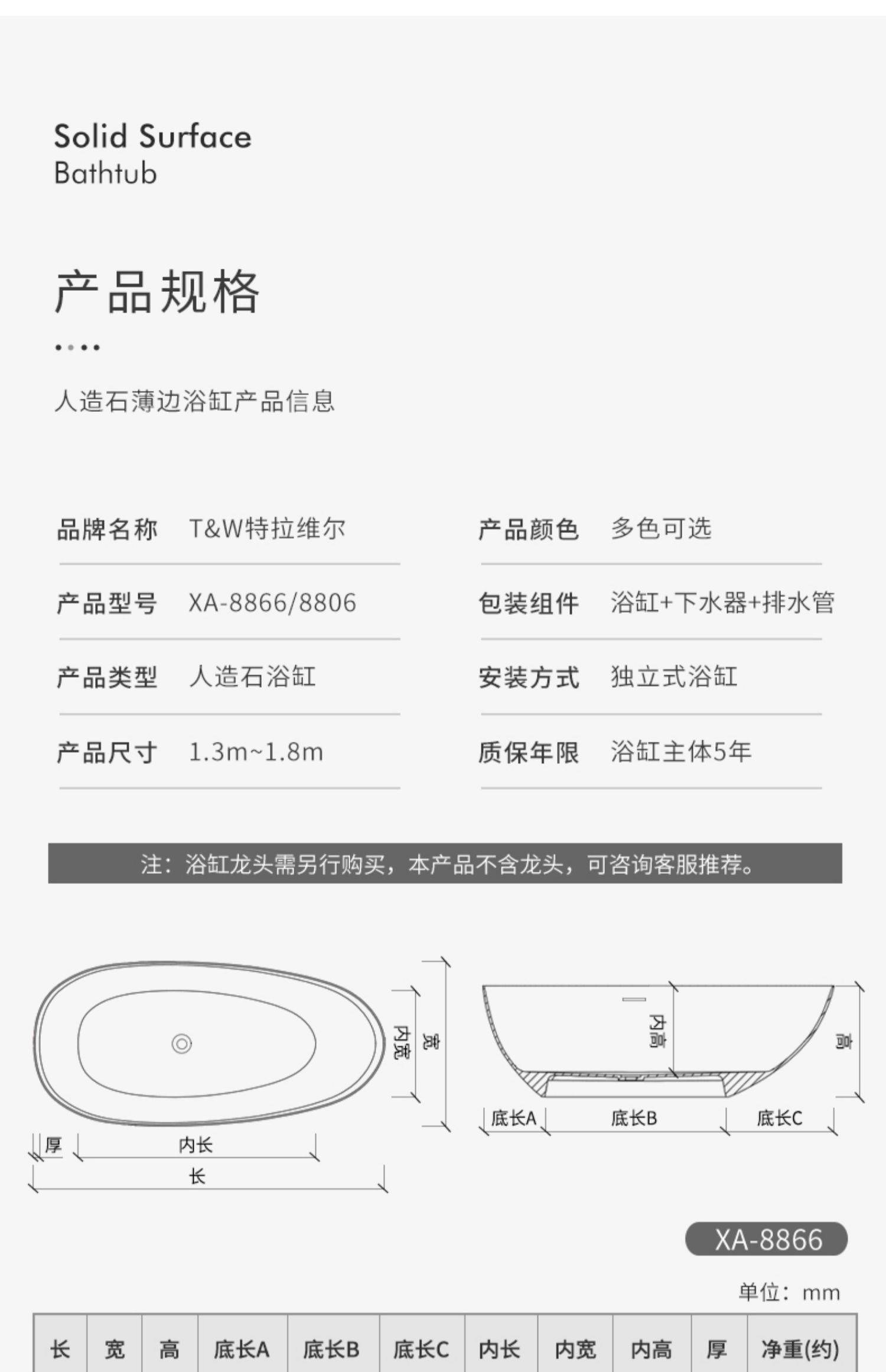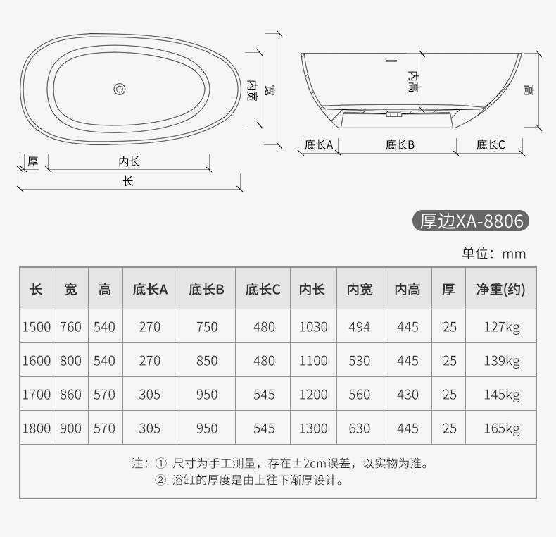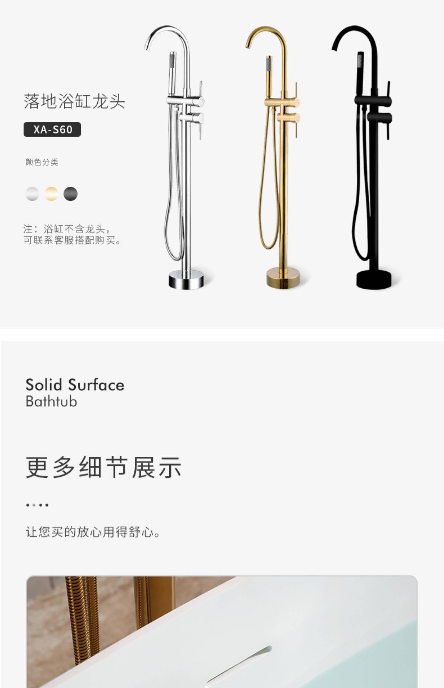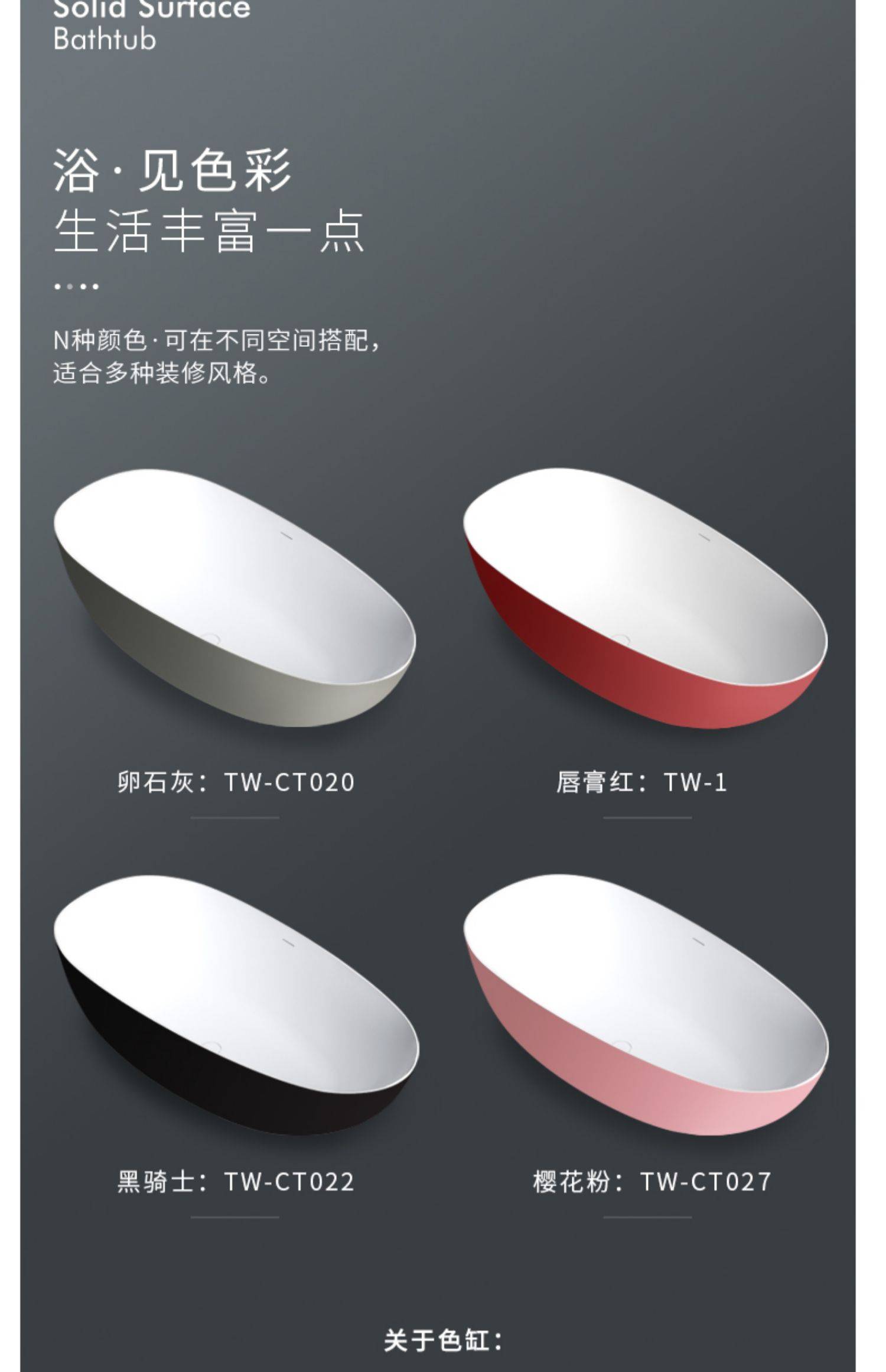 OF9D人造石浴缸家用小户型独立式轻奢厚薄边鹅蛋形绮美石浴盆