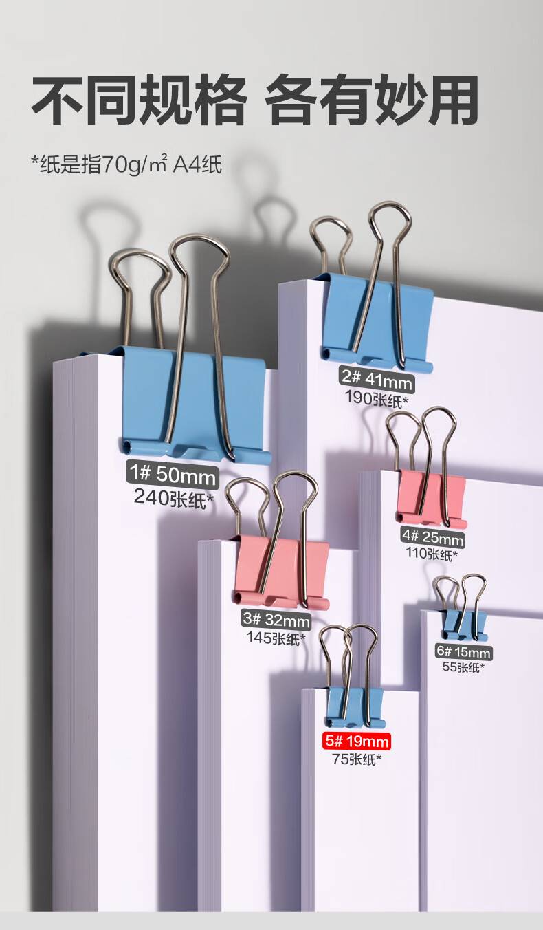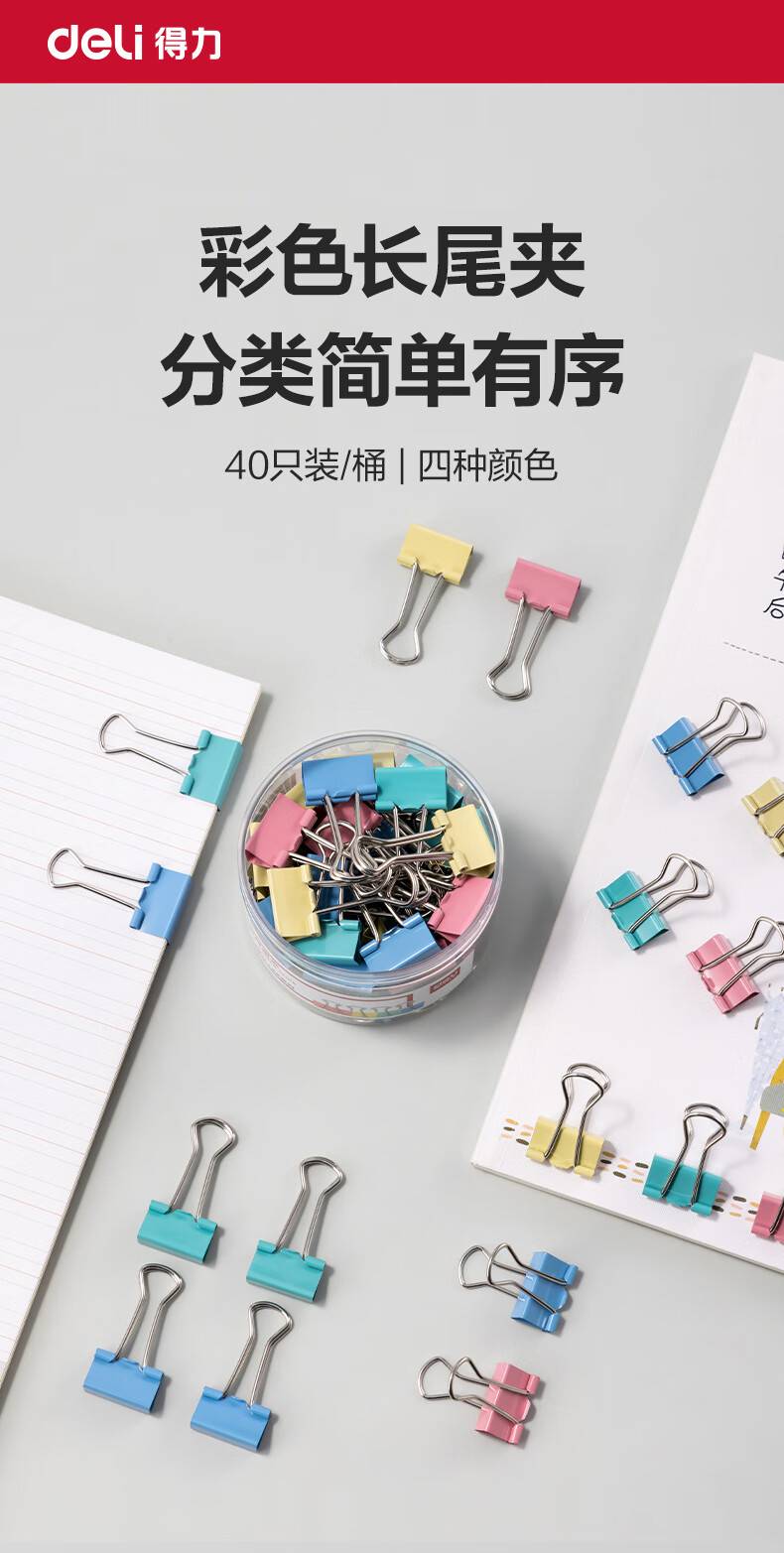 得力deli彩色长尾夹票夹5#19mm小号燕尾夹票据夹子 40只/筒8555ES