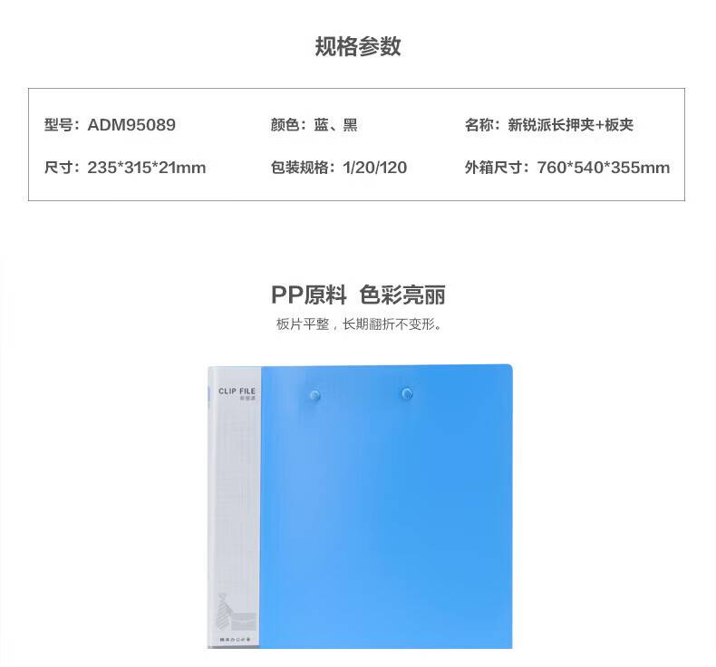 晨光黑色文件夹 A4长押夹新锐系列资料夹报告夹 单个装ADM95089
