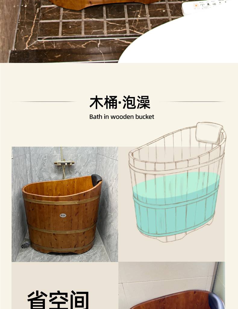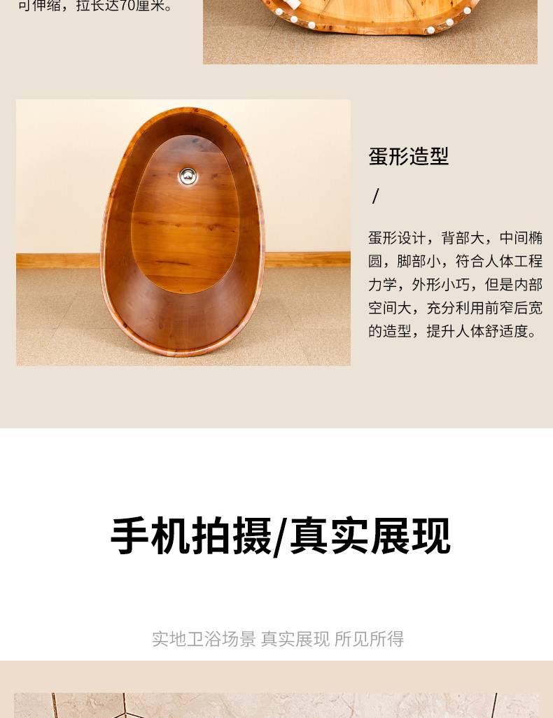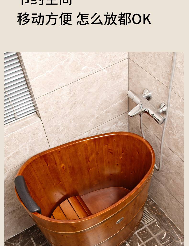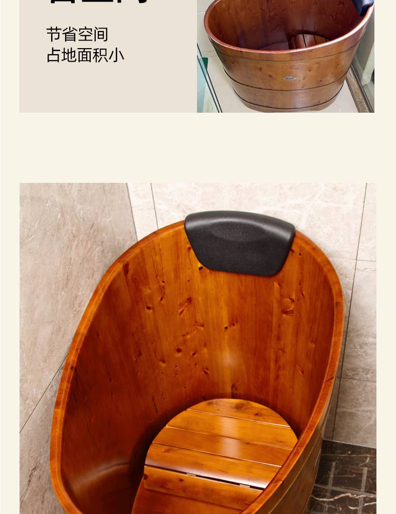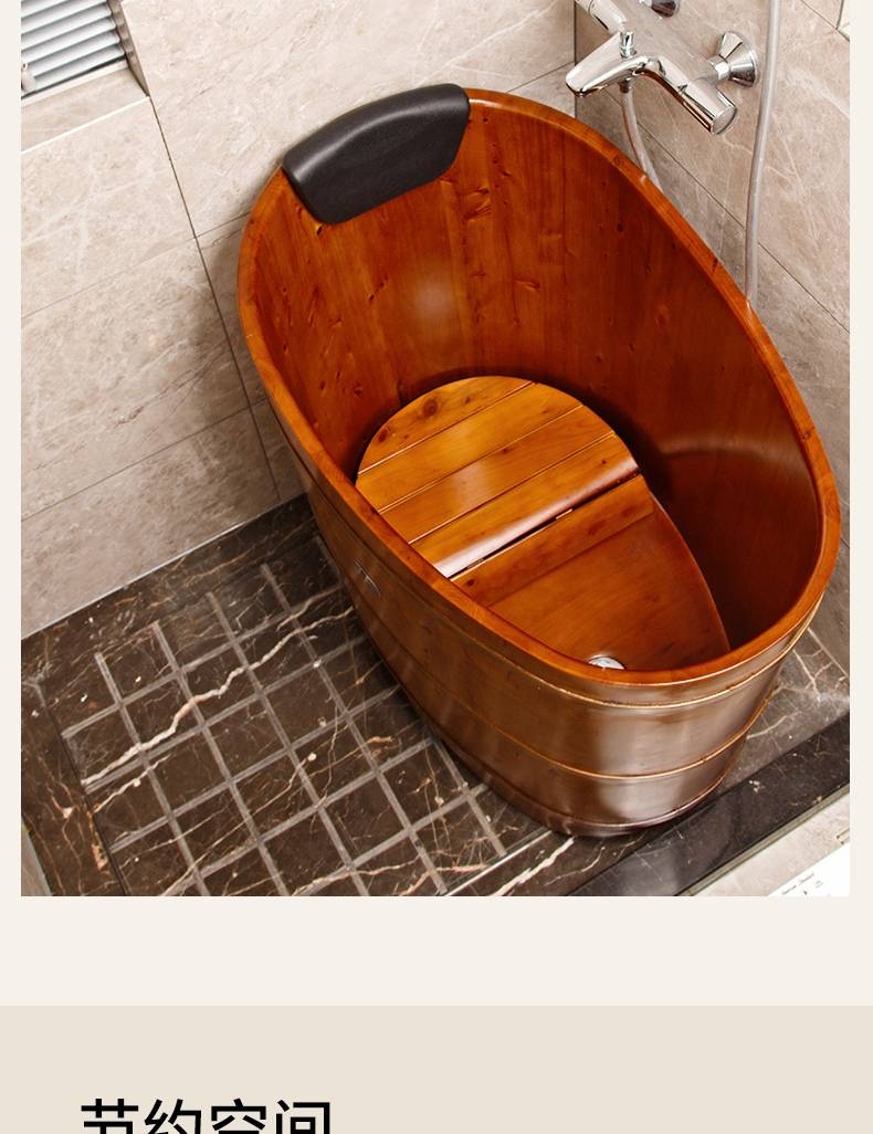 A6L泡澡木桶浴桶实木浴缸小户型成人木质洗澡盆家用蛋圆形沐浴桶