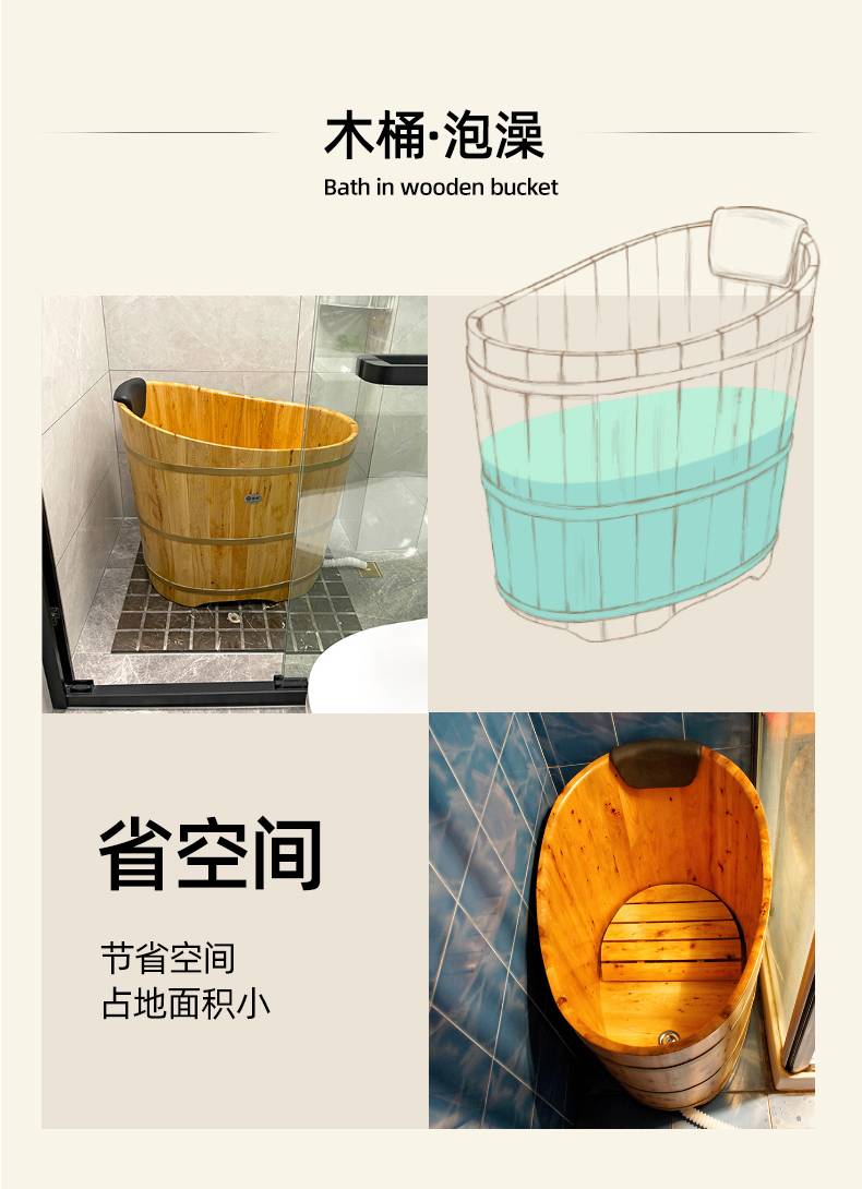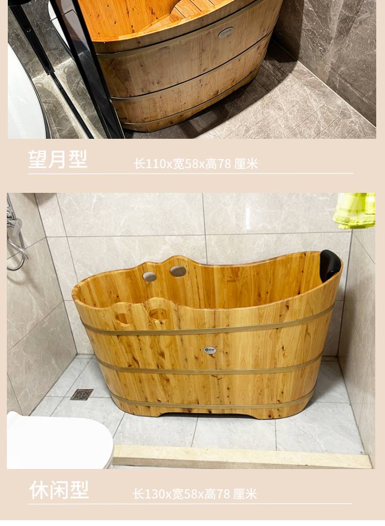 0FE9香柏木圆形成人泡澡木桶浴桶实木浴缸洗澡盆小浴室木质沐