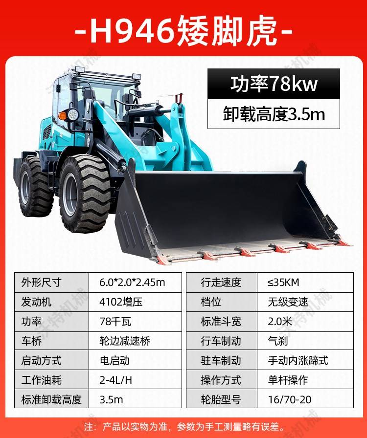 矮脚虎铲车小型946四驱装载机工程用的铲运机4102带增压发动机