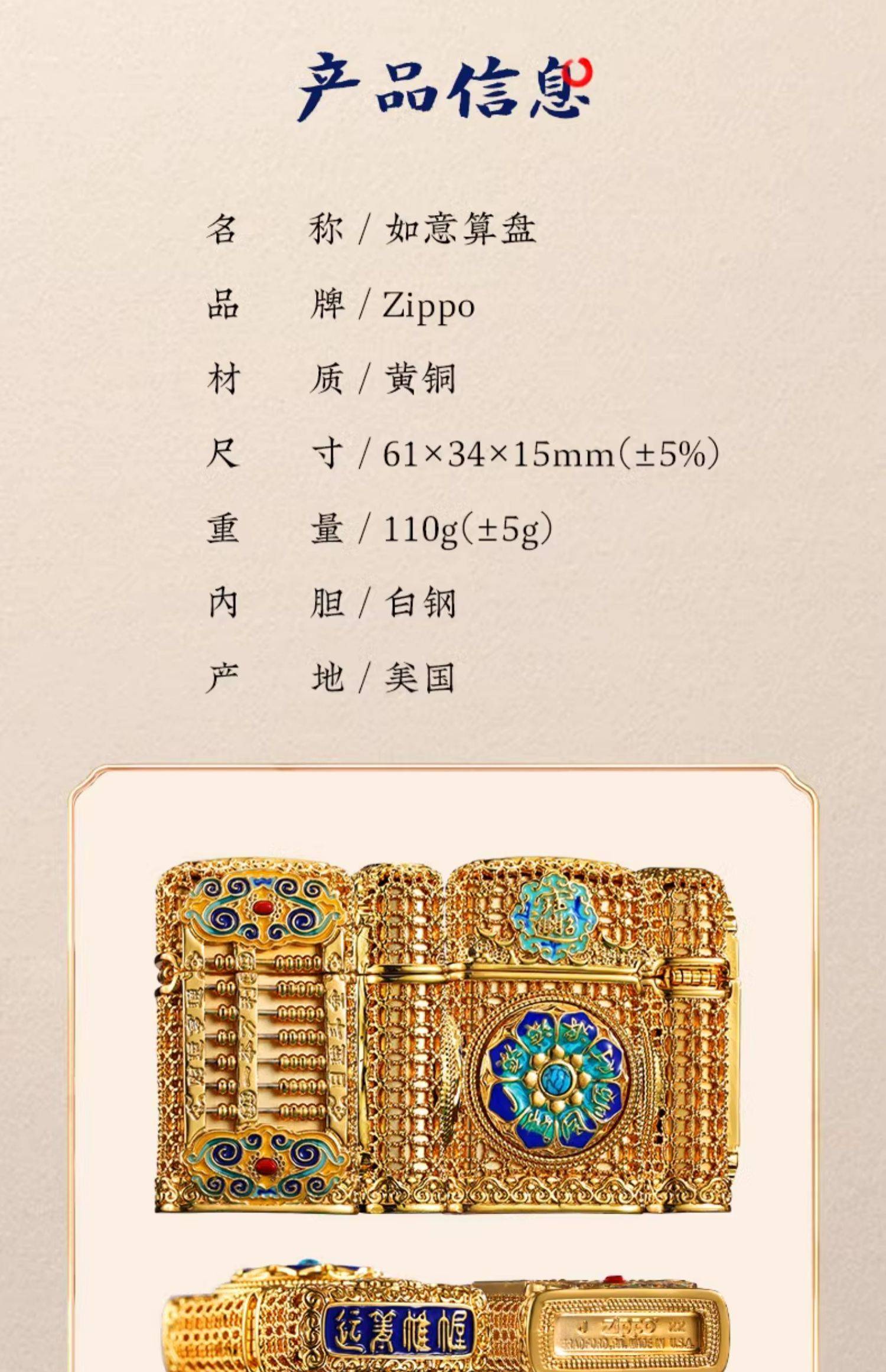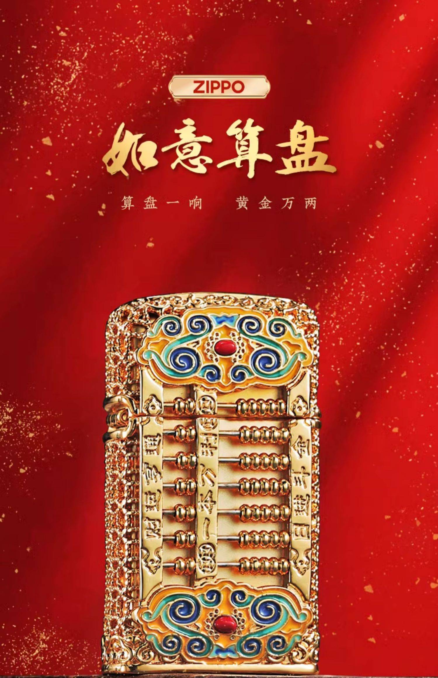 原装正版zippo打火机官方正品 珐琅花丝如意算盘男士礼物送长辈