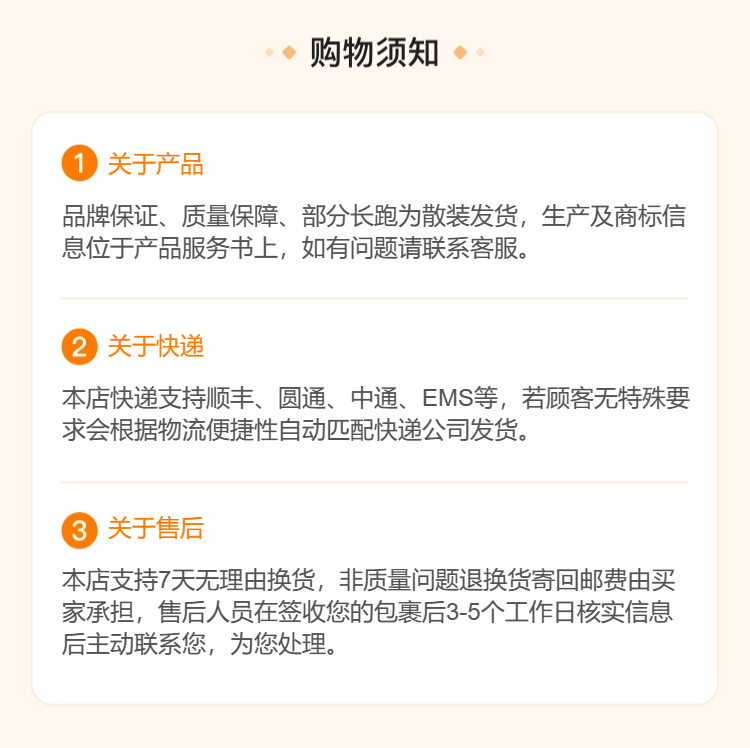 特别提示:商品详情页中(含主图)以文字或者图片形式标注的抢购价等价格可能是在特定活动时段下的价格,商品的具体价格以订单结算页价格为准或言是您与商家联系后协商达成的实际成交价格为准;如您发现活动商品价格或活动信息有异常,建议购买前先咨询商家。