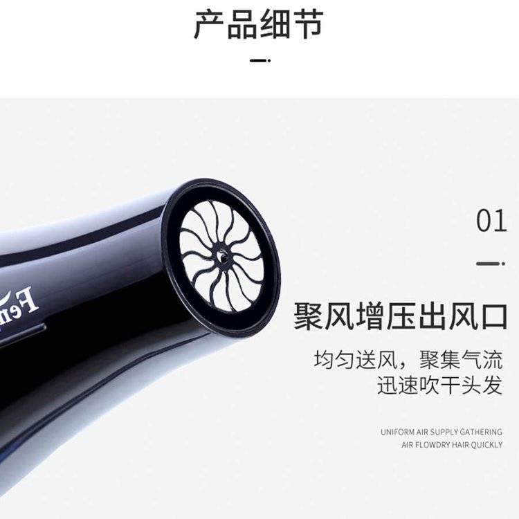 风姿2200W大功率不伤发电吹风黑色款三档调节