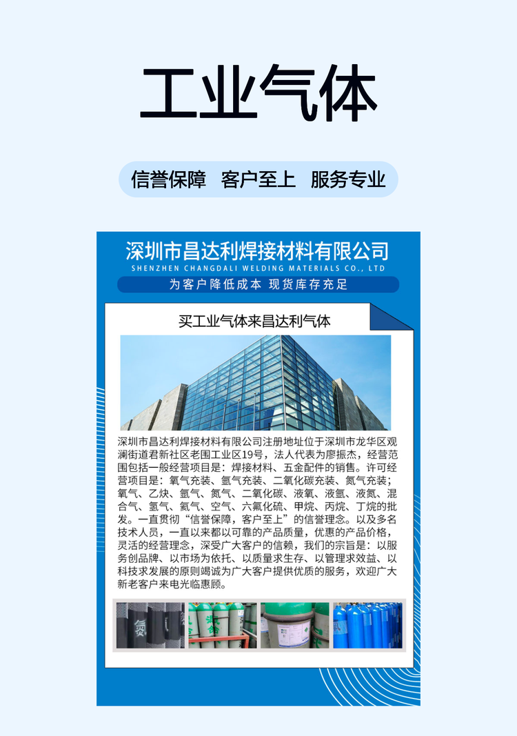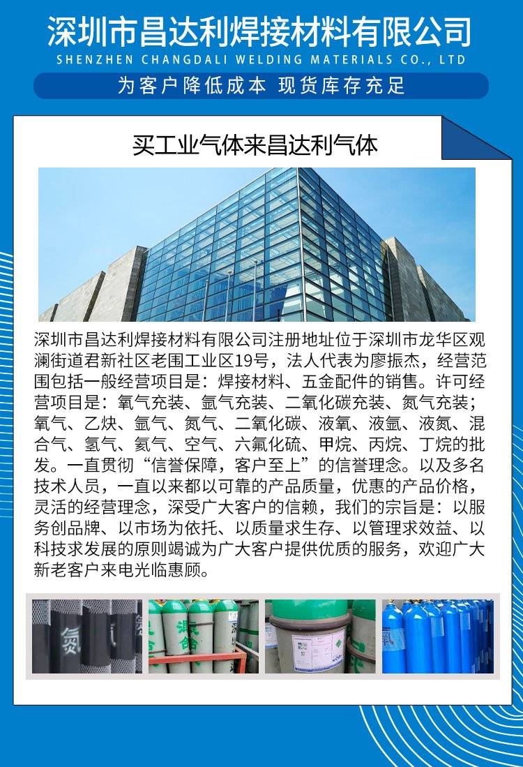 昌达利 工业气体 规格齐全 库存充足 定制配套服务