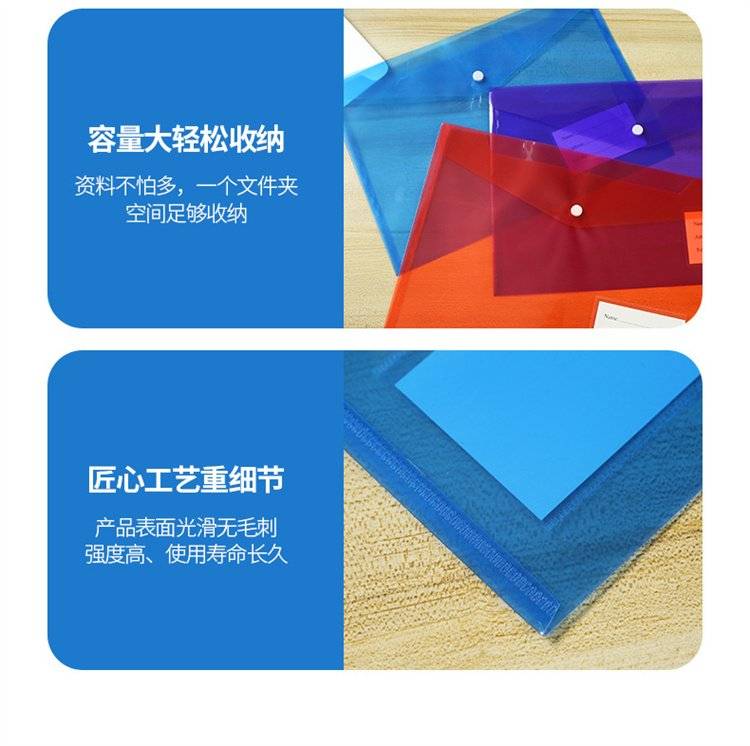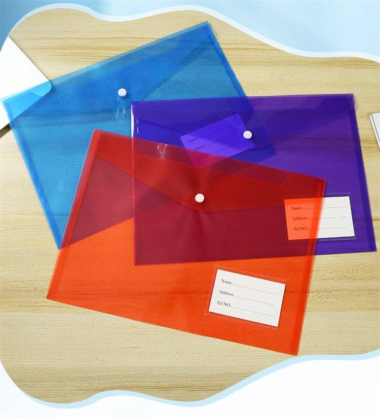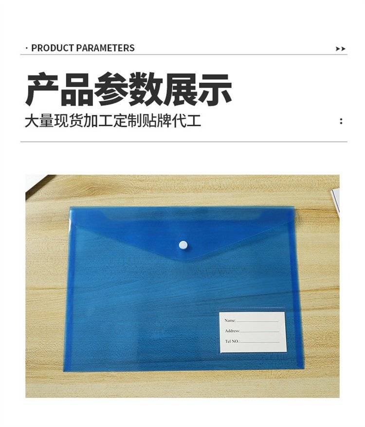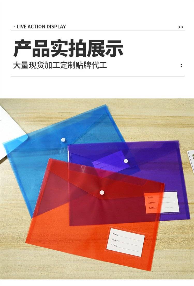 A4透明按扣文件袋 带标签款科目文件分类袋 办公资料收纳袋