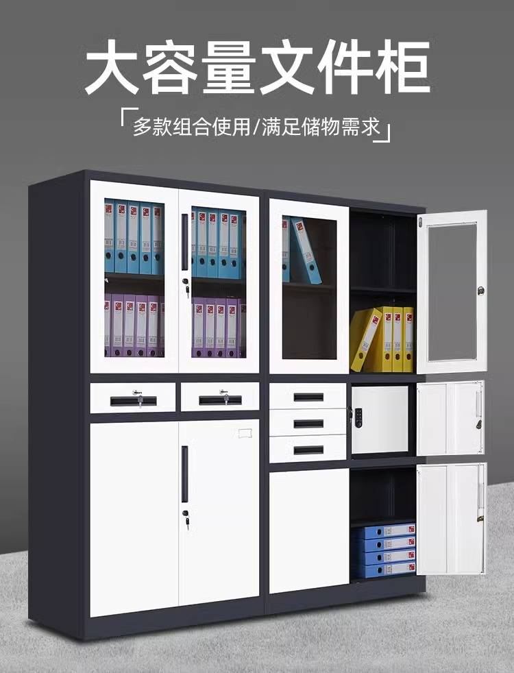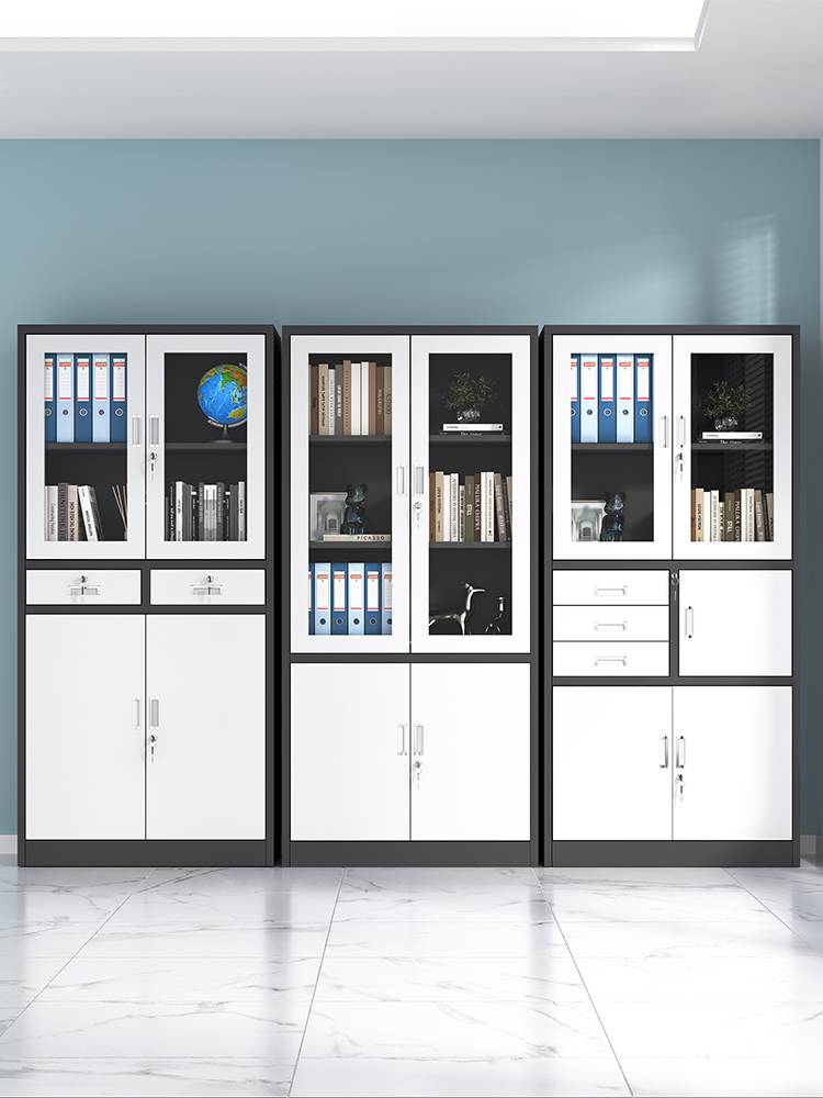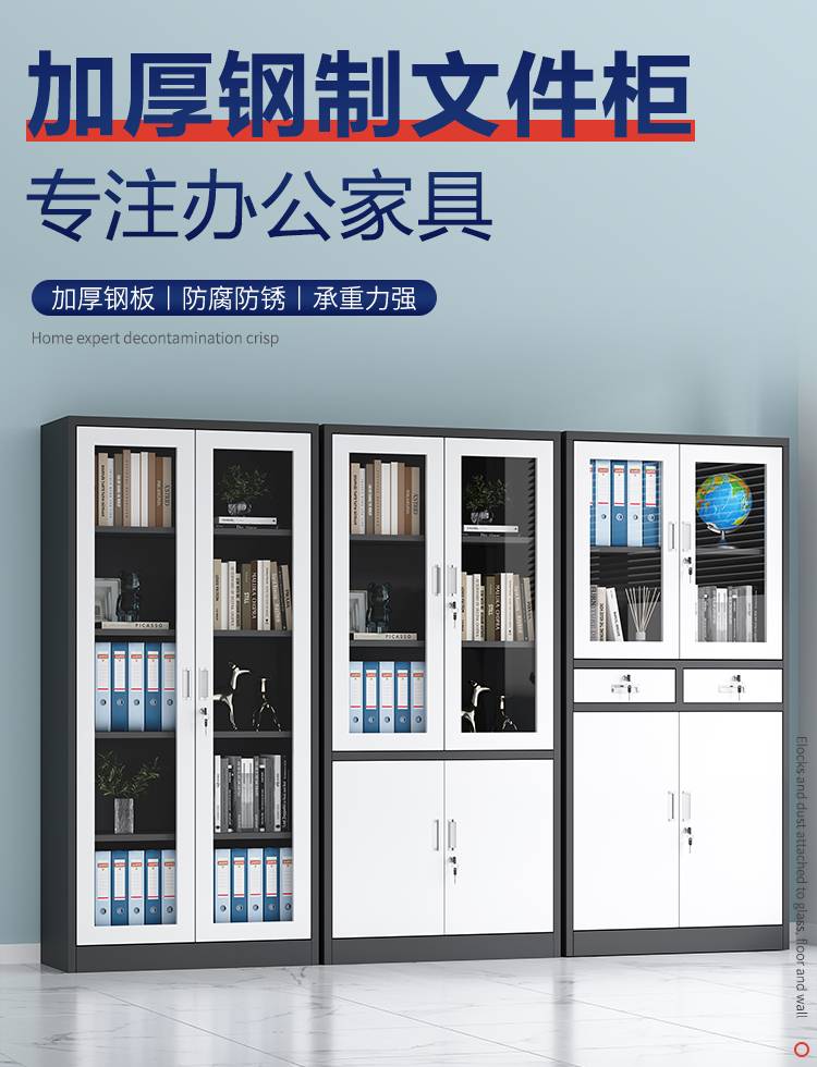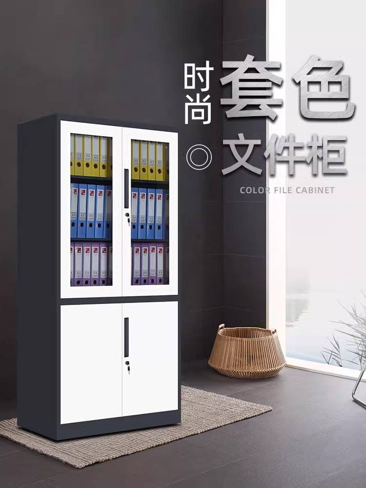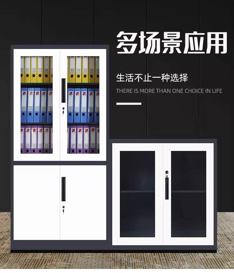 钢制加厚窄边办公文件柜套色带玻璃可视拆装资料柜时尚书籍收纳柜