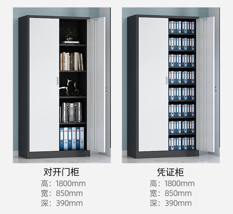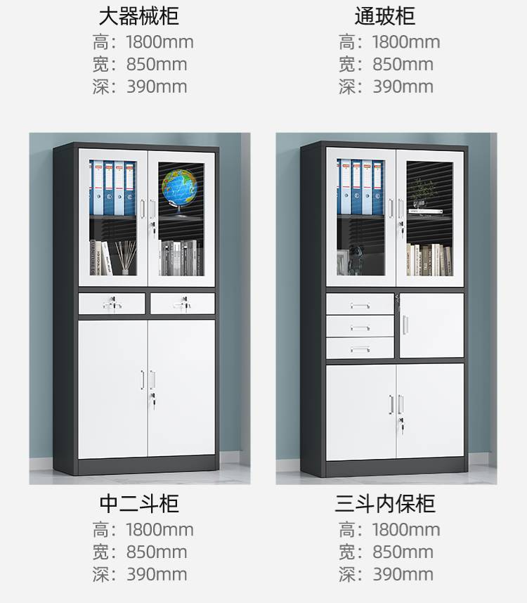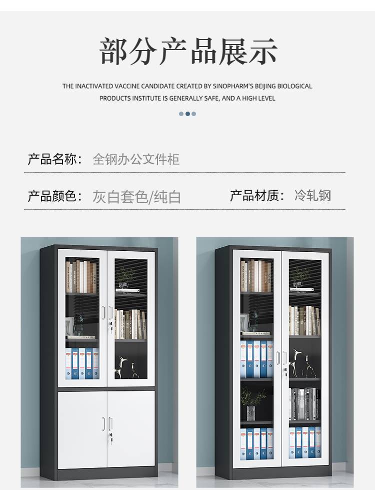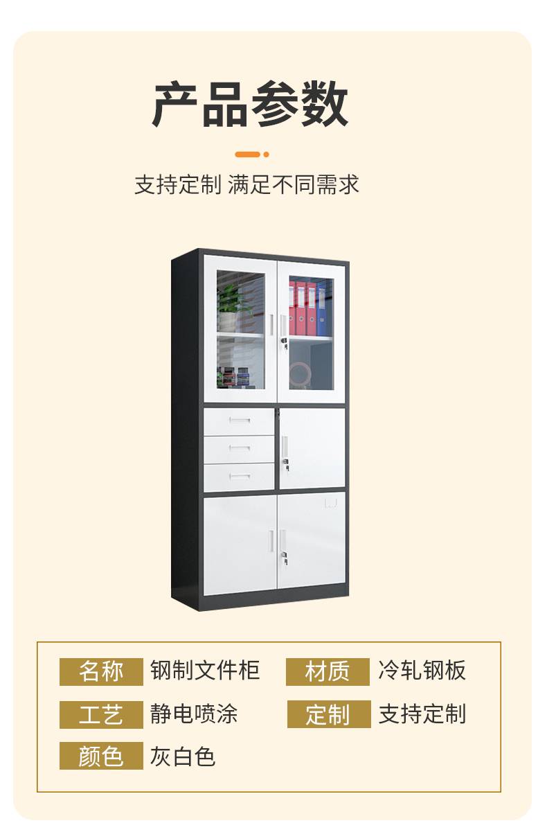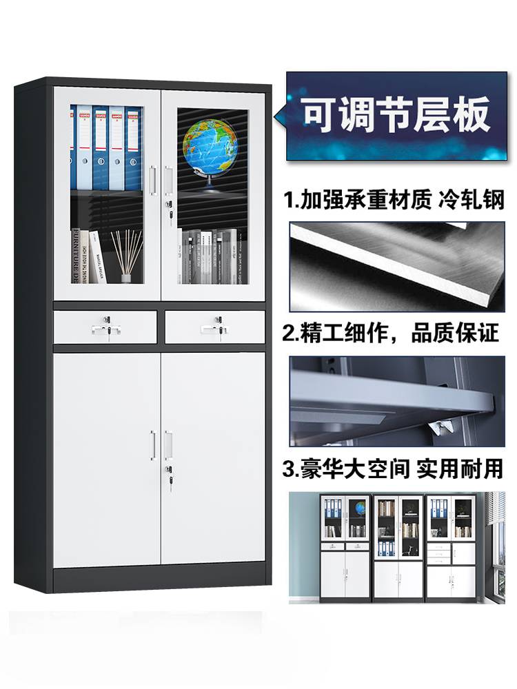 钢制加厚窄边办公文件柜套色带玻璃可视拆装资料柜时尚书籍收纳柜