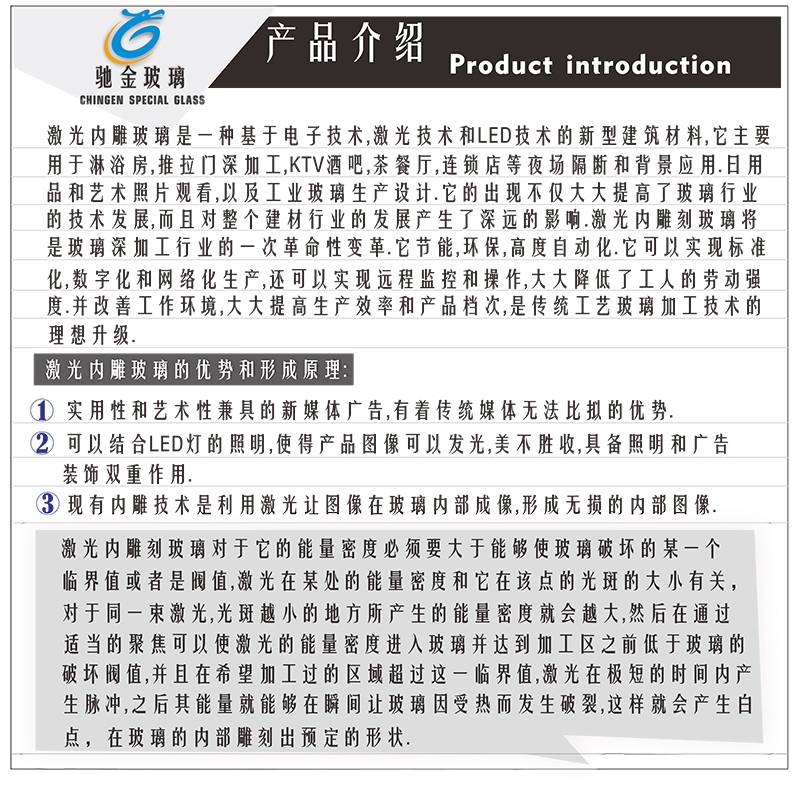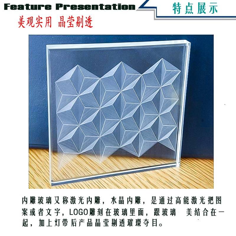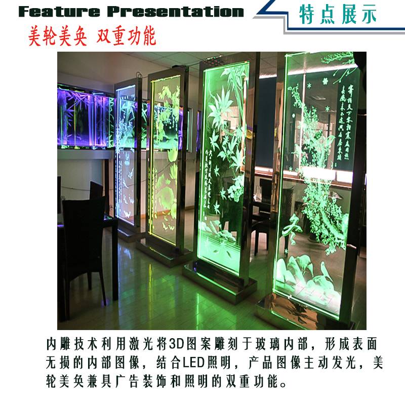 源头厂家生产激光内雕发光艺术玻璃 玻璃内部雕刻图案屏风隔断玻璃