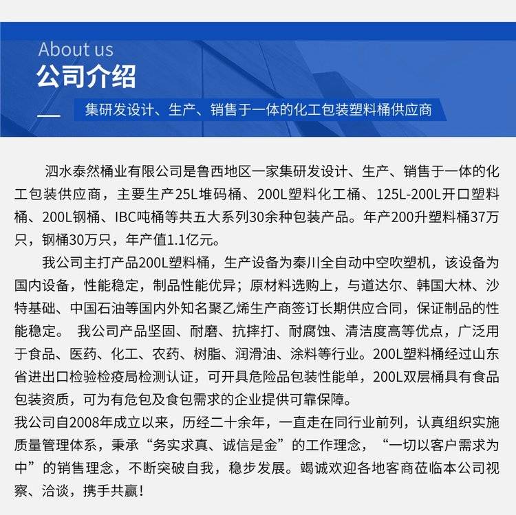 常用容器 200L化工塑料桶 工业废料暂存 可定做各种尺寸 泰然