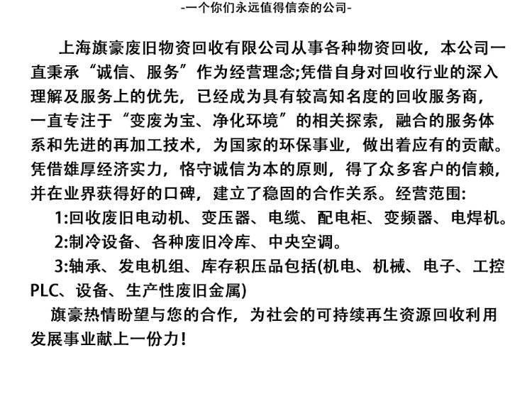 废旧物资回收,电子产品,办公用品,酒店设备,厨房设备,机械设备及配件,机电设备及配件,环保设备,节能产品,锅炉,一类医疗器械,数控机床,不锈钢制品,塑料制品销售\r【依法须经批准的项目,经相关部门批准后方可开展经营活动】