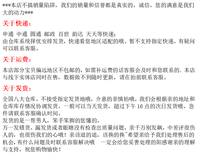 特别提示:商品详情页中(含主图)以文字或者图片形式标注的抢购价等价格可能是在特定活动时段下的价格,商品的具体价格以订单结算页价格为准或言是您与商家联系后协商达成的实际成交价格为准;如您发现活动商品价格或活动信息有异常,建议购买前先咨询商家。